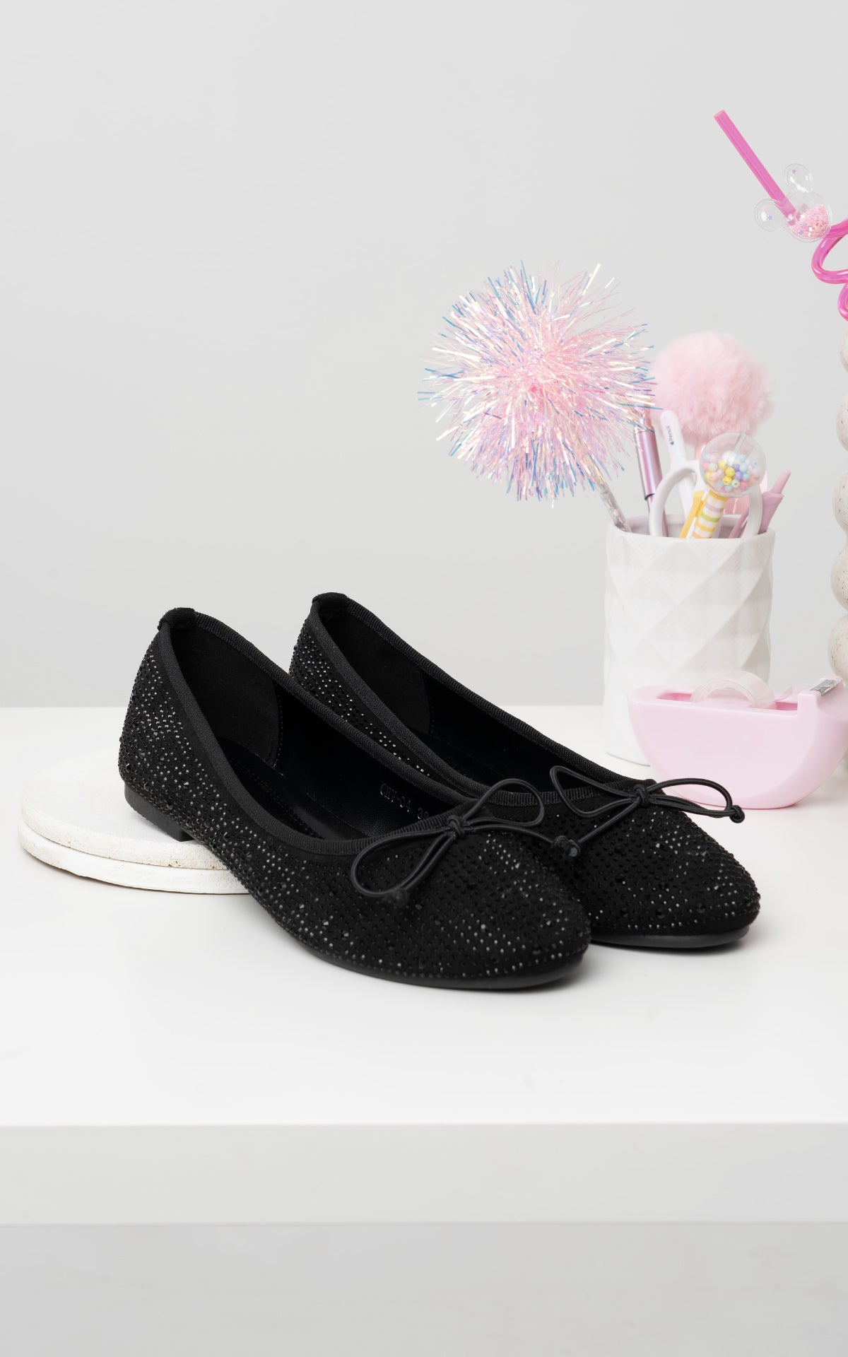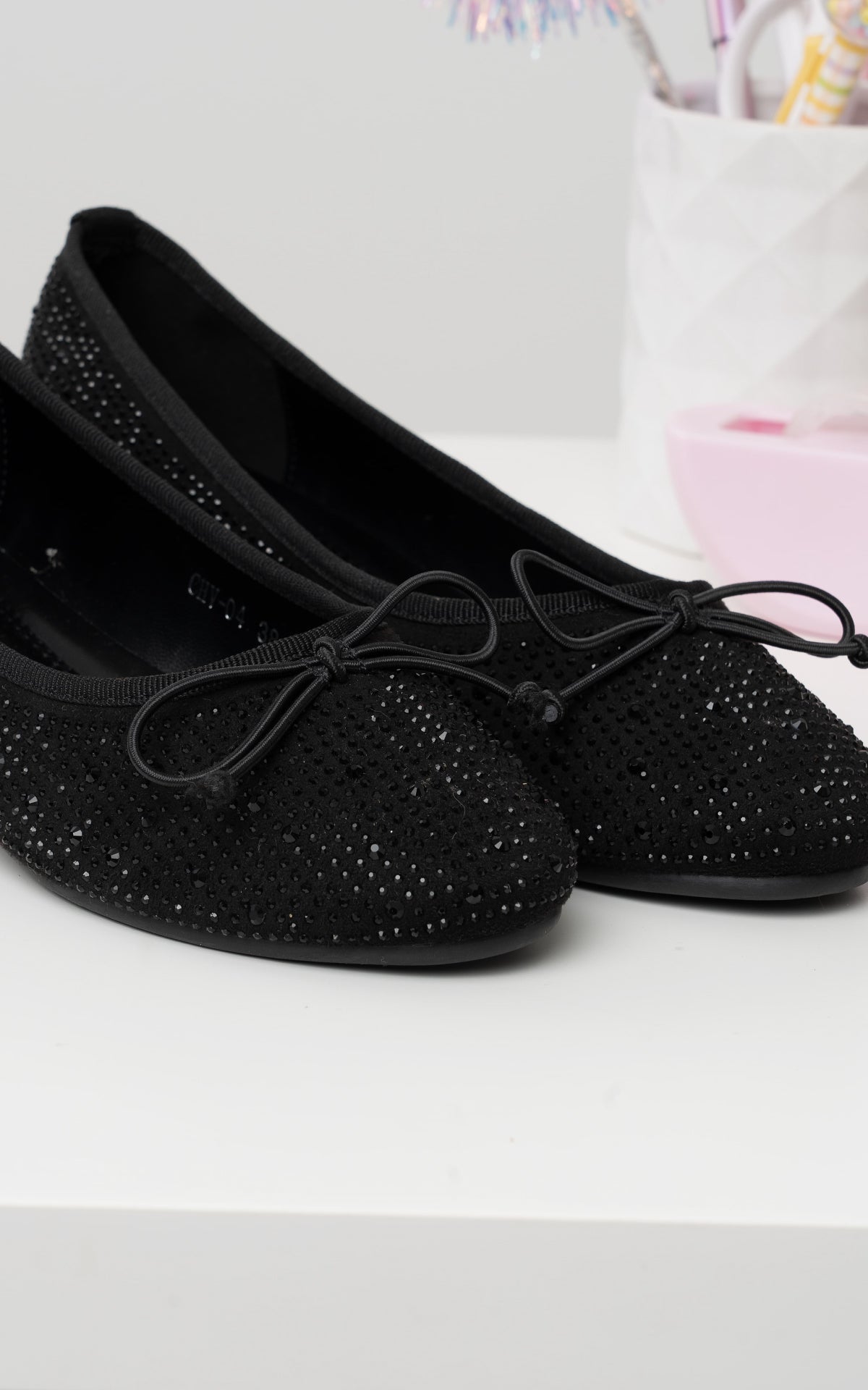 Baletas negras lazo x brillos