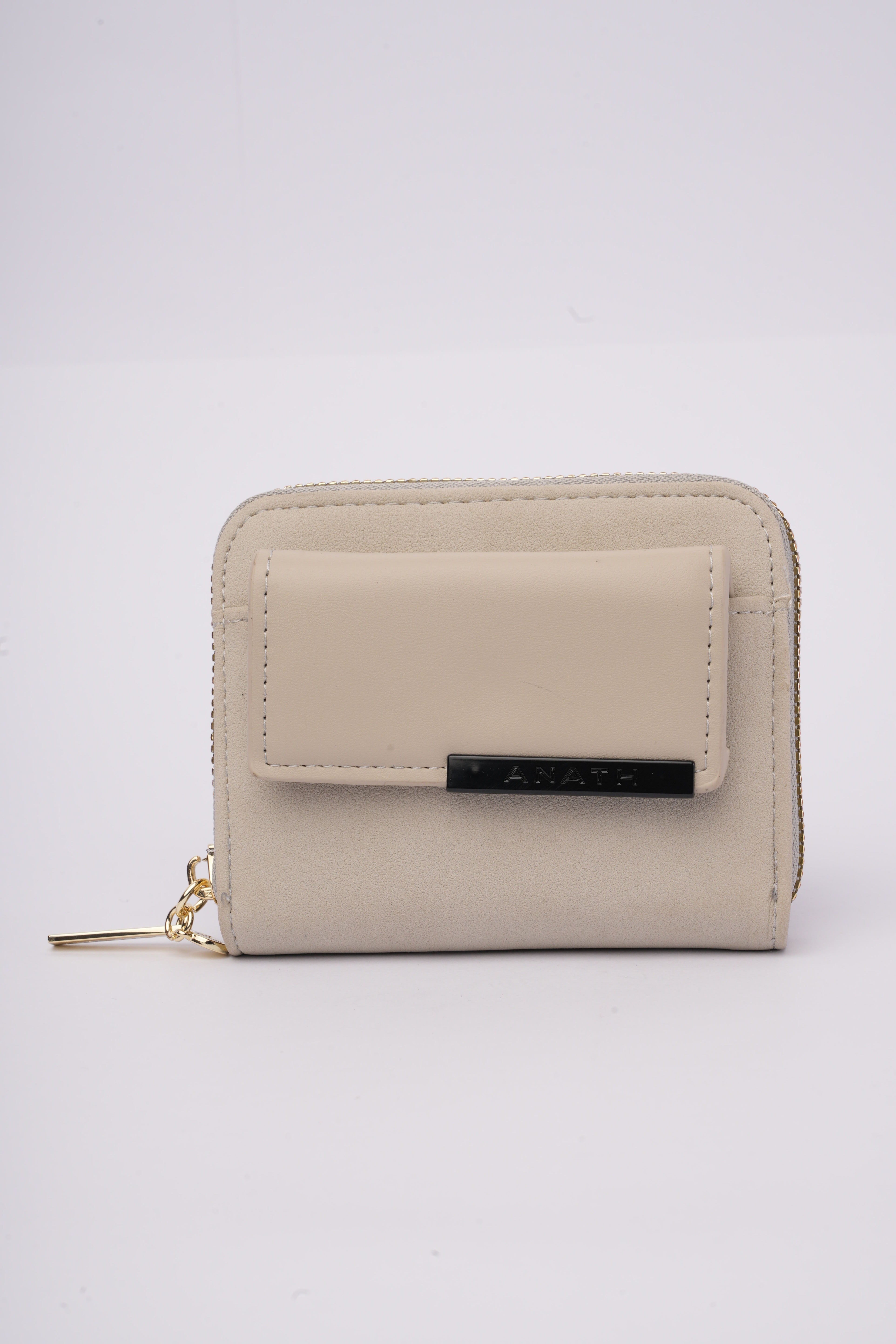 Billetera cuadrada gris con diseño frontal