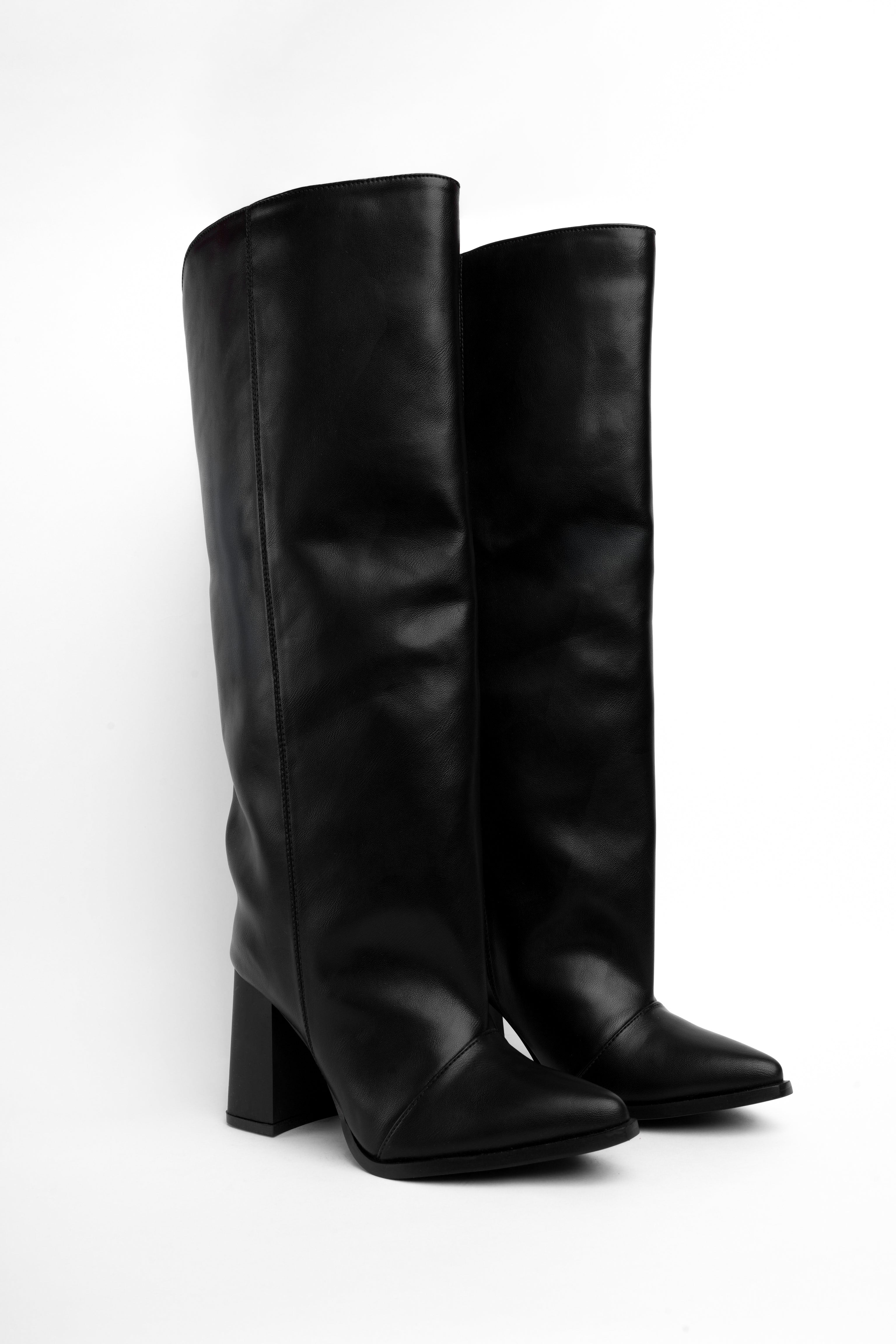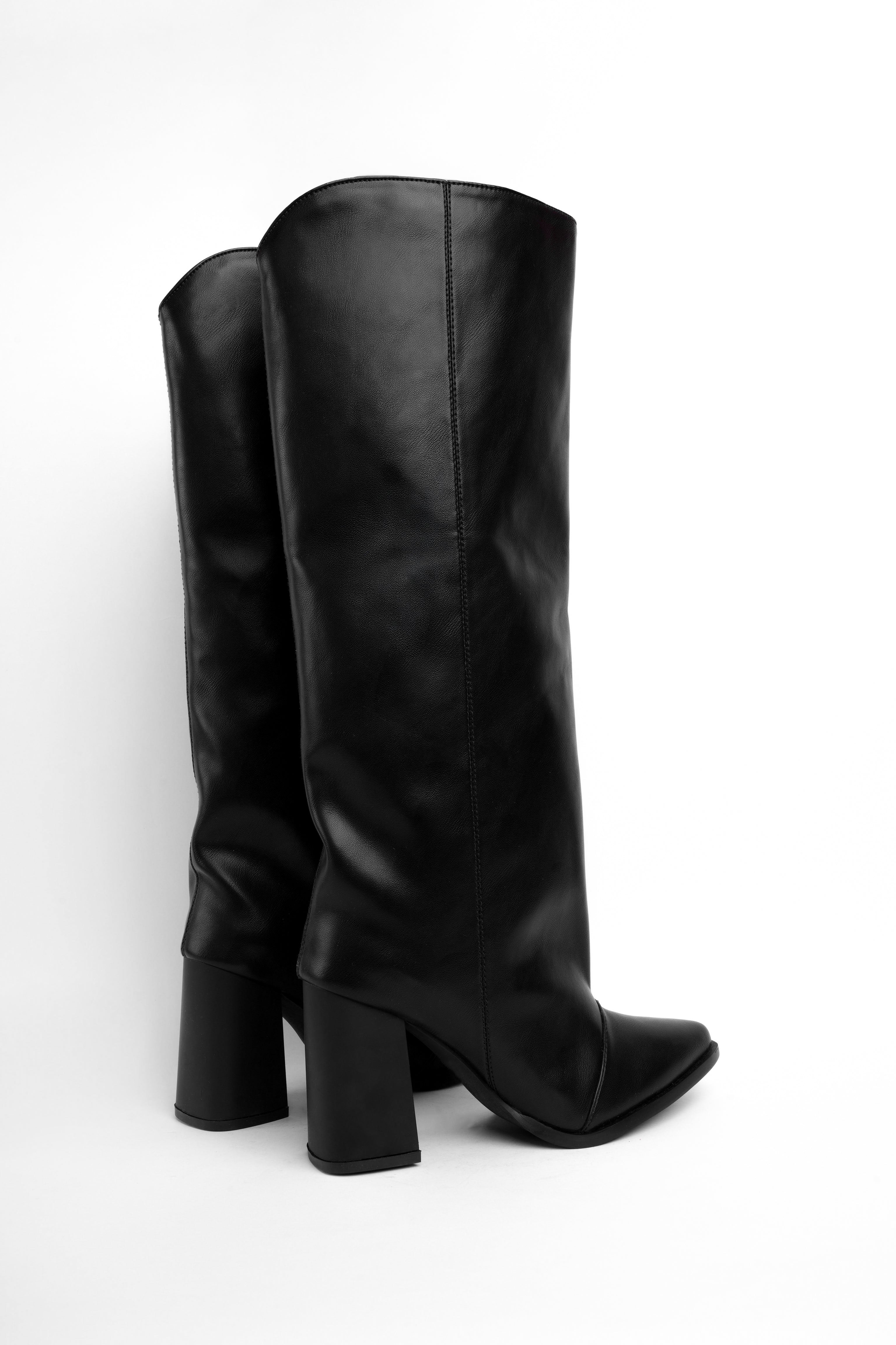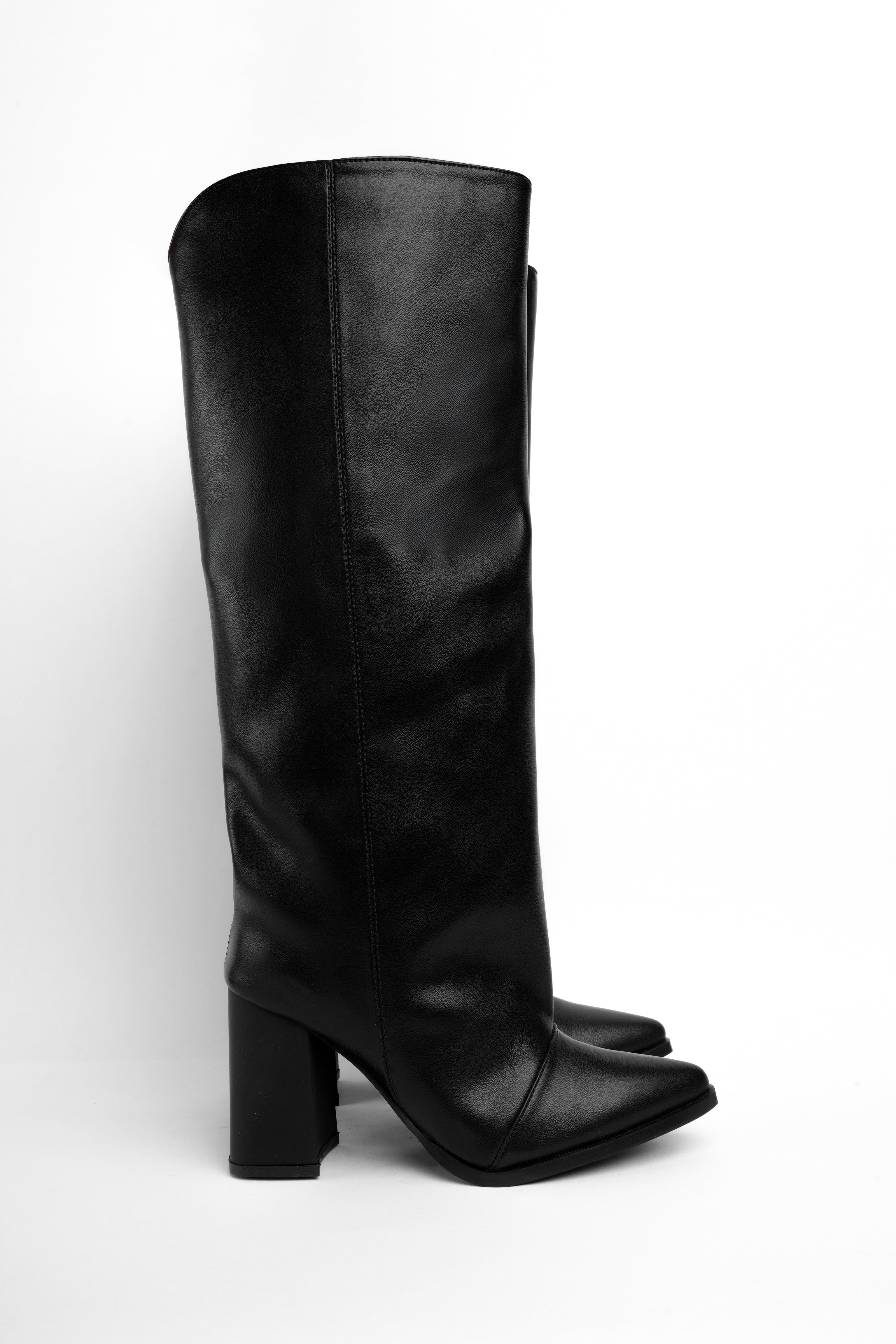 Bota alta negra tacón y material suave