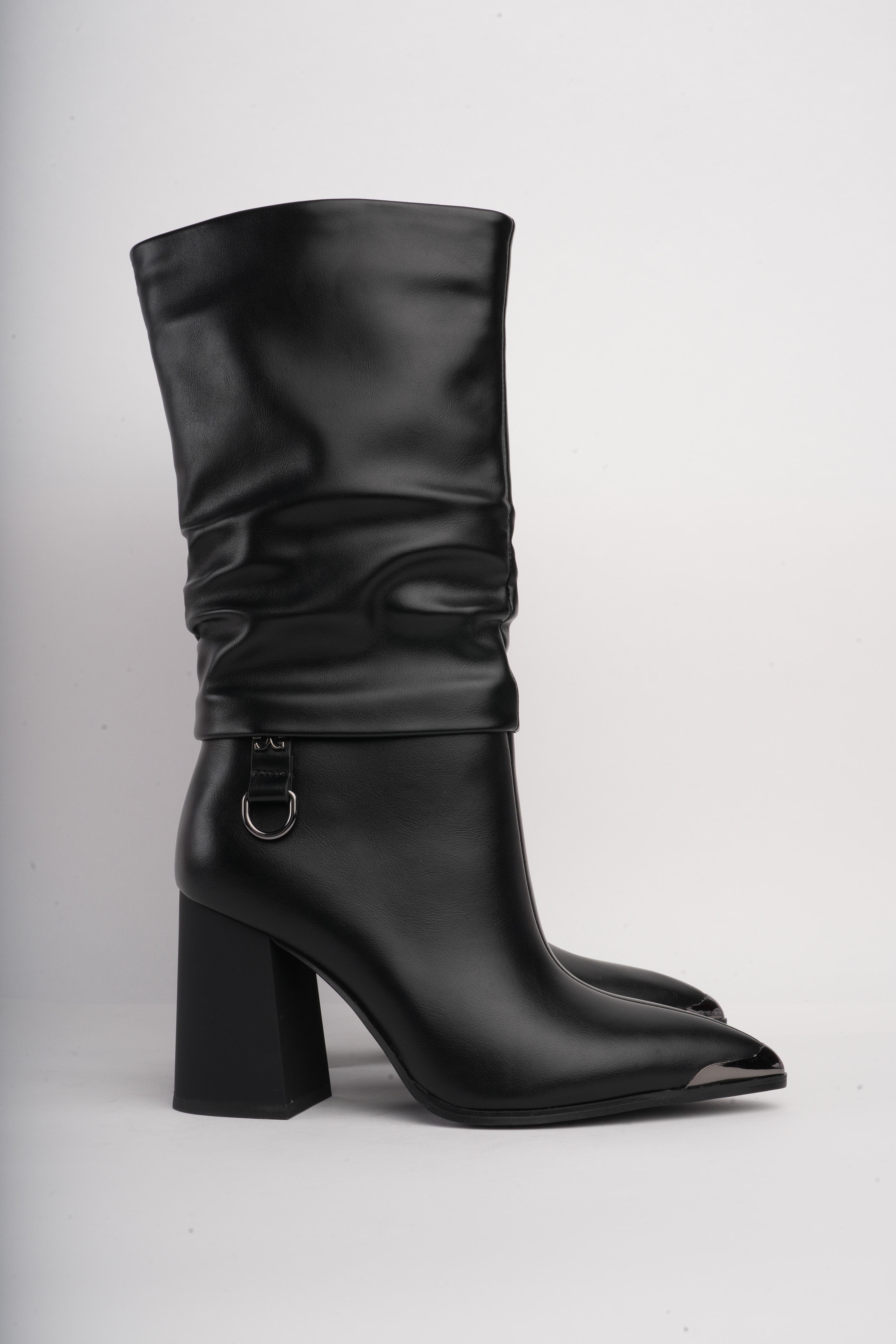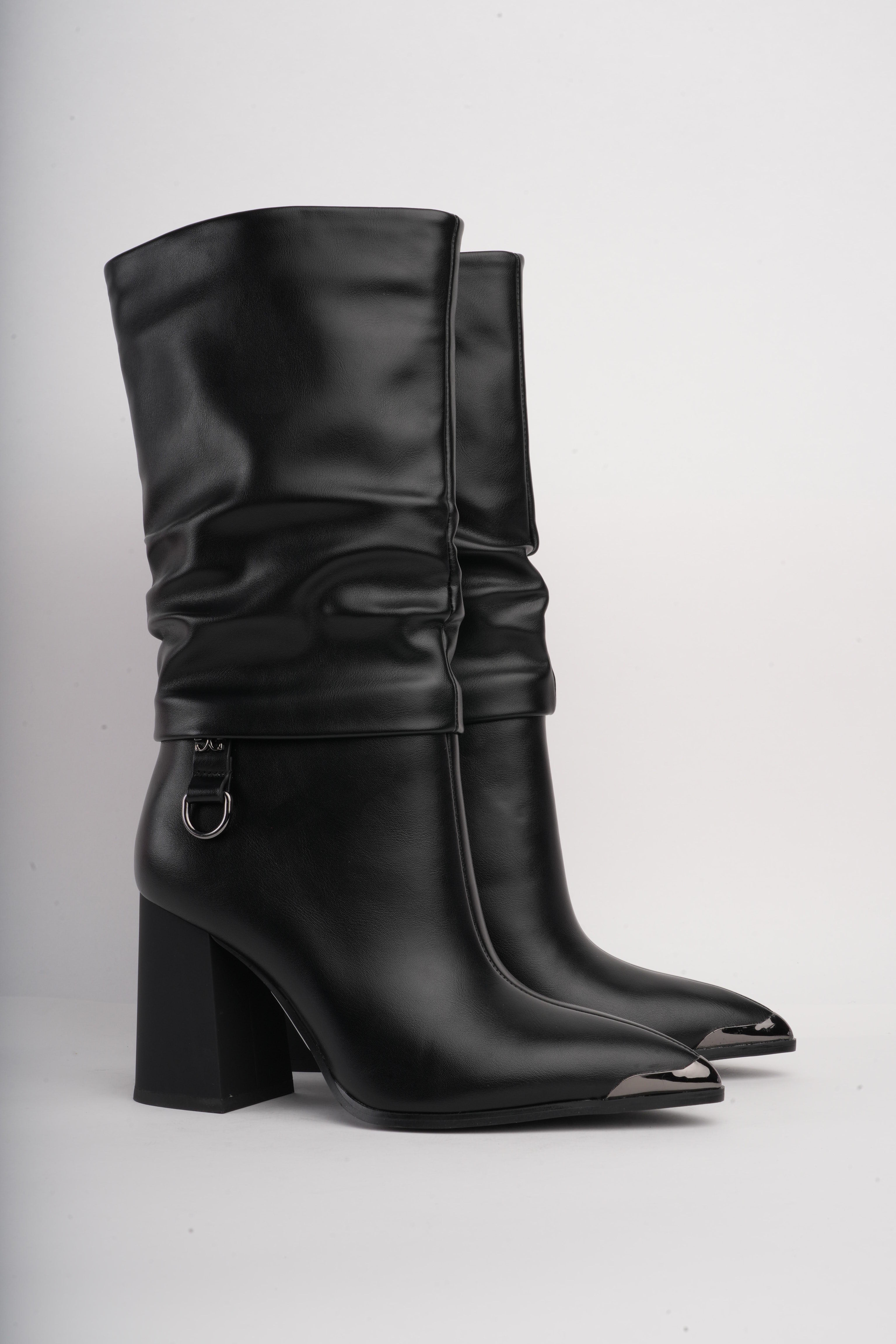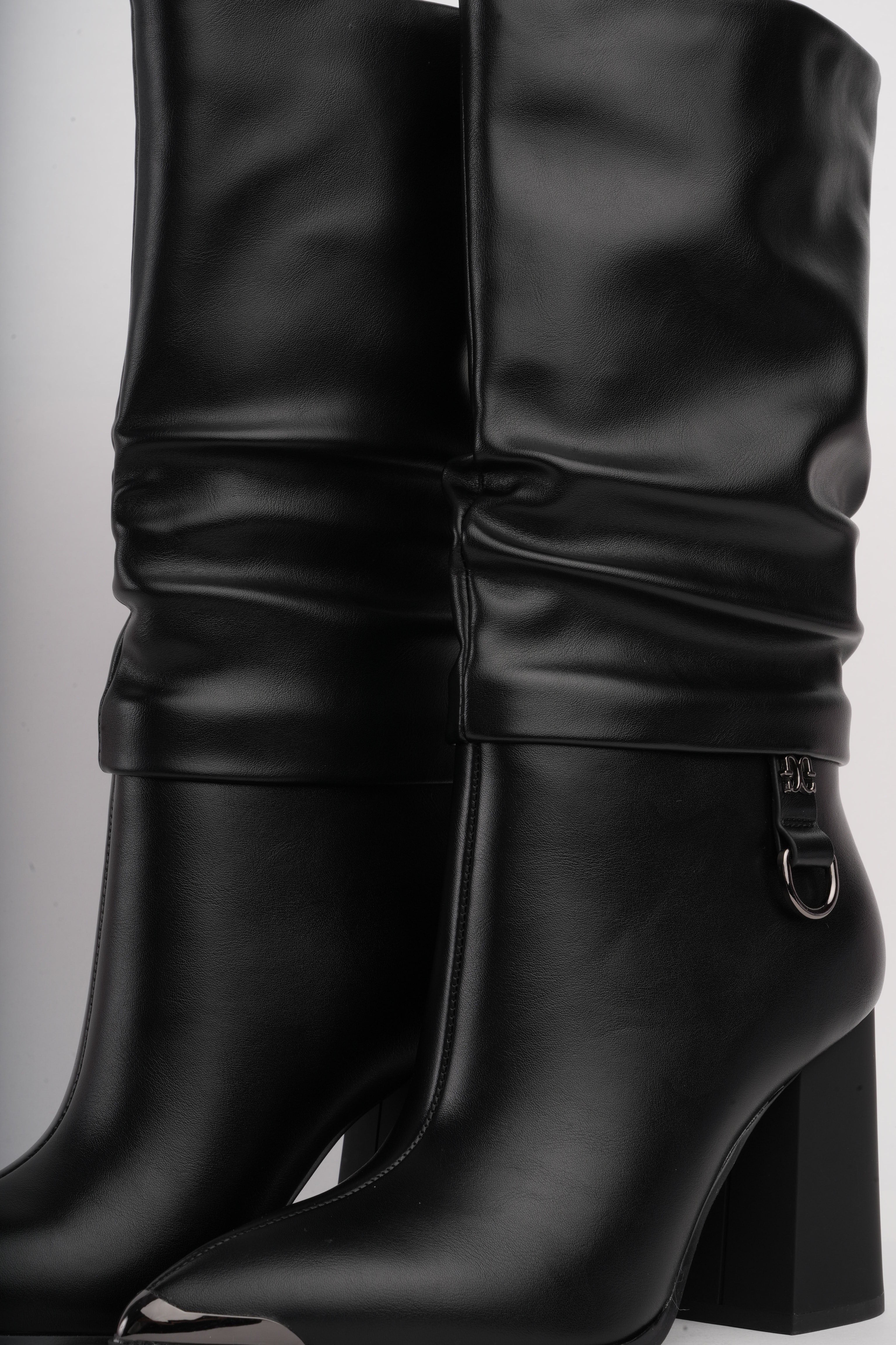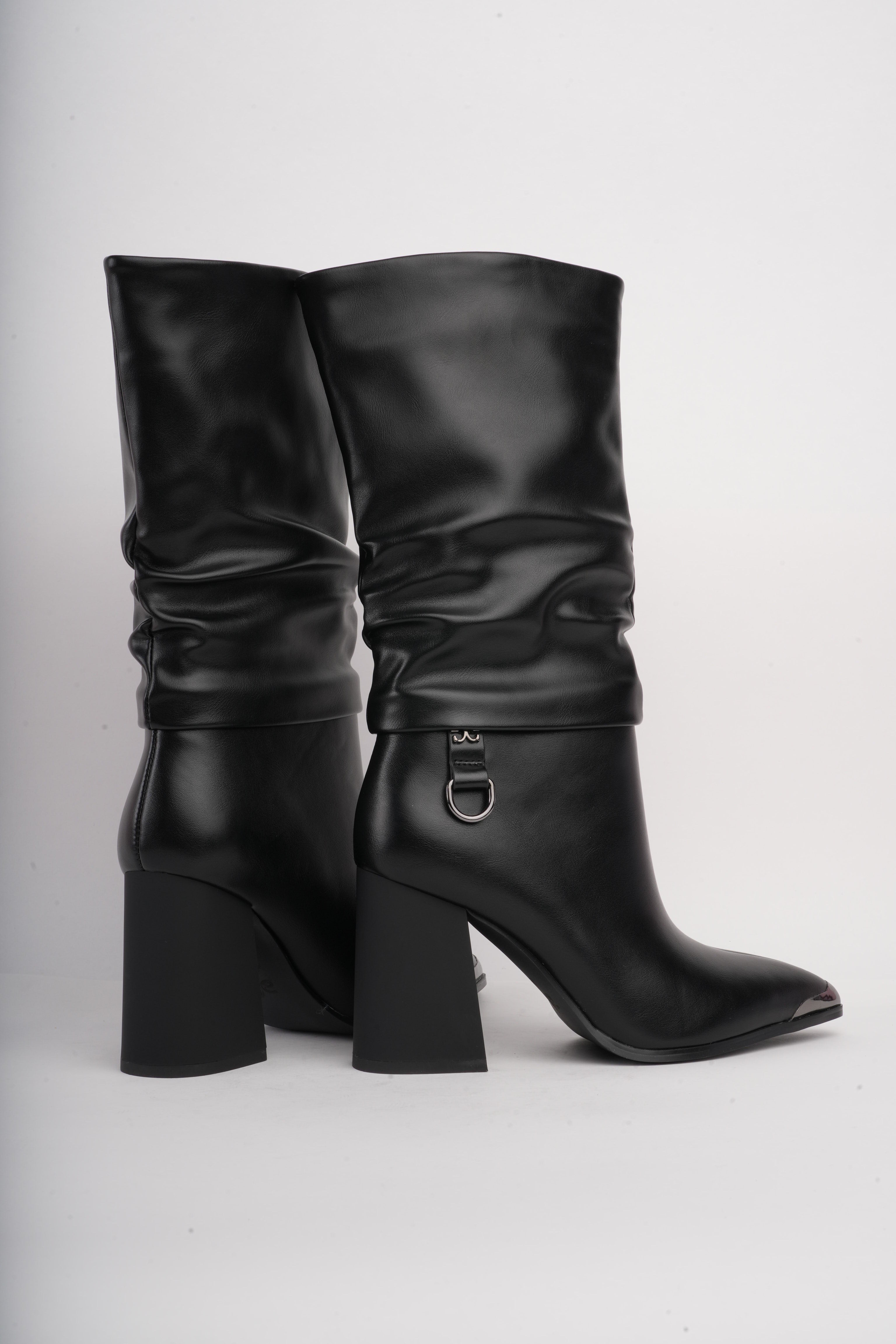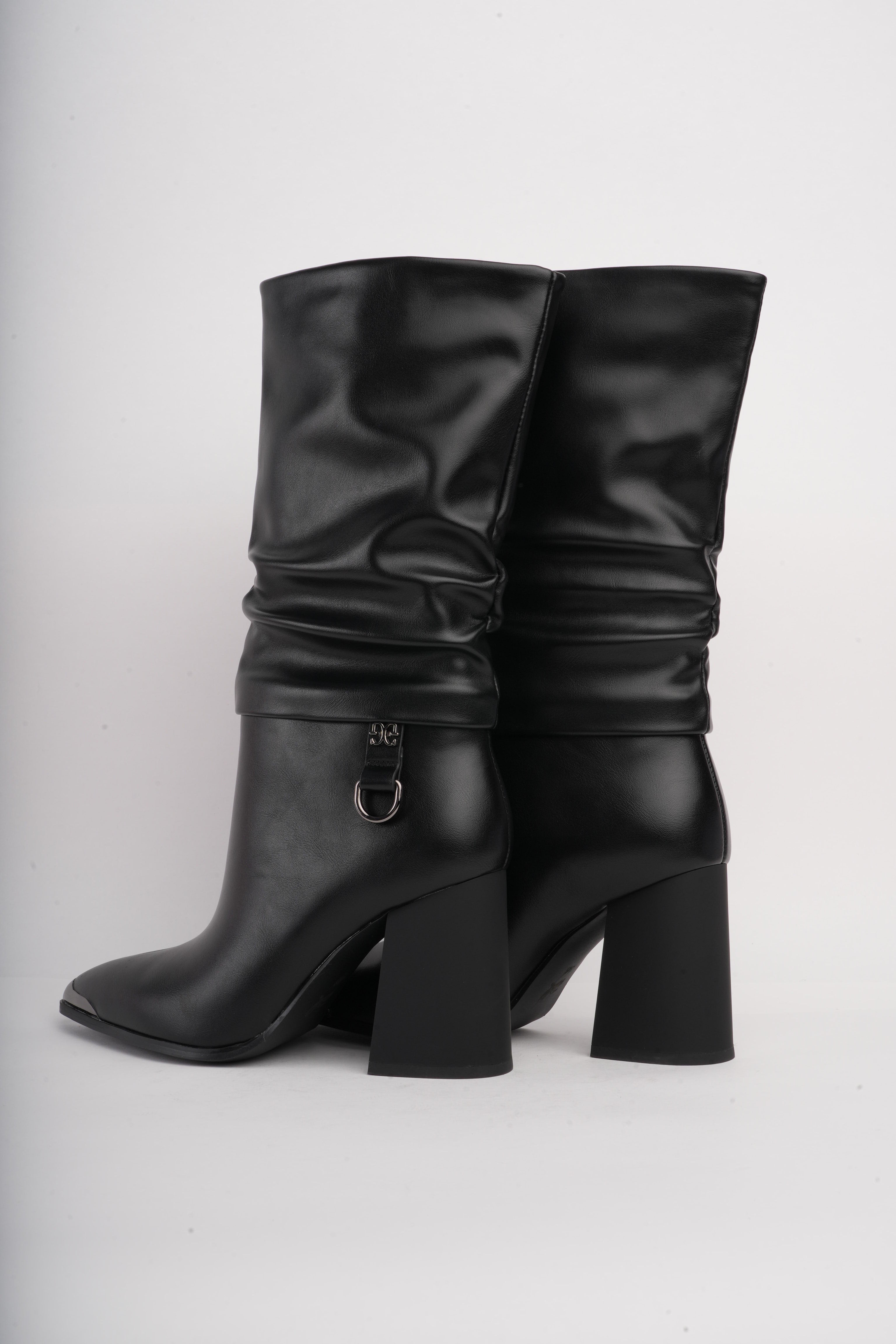 Botas de tacón negras corrugadas x hebilla
