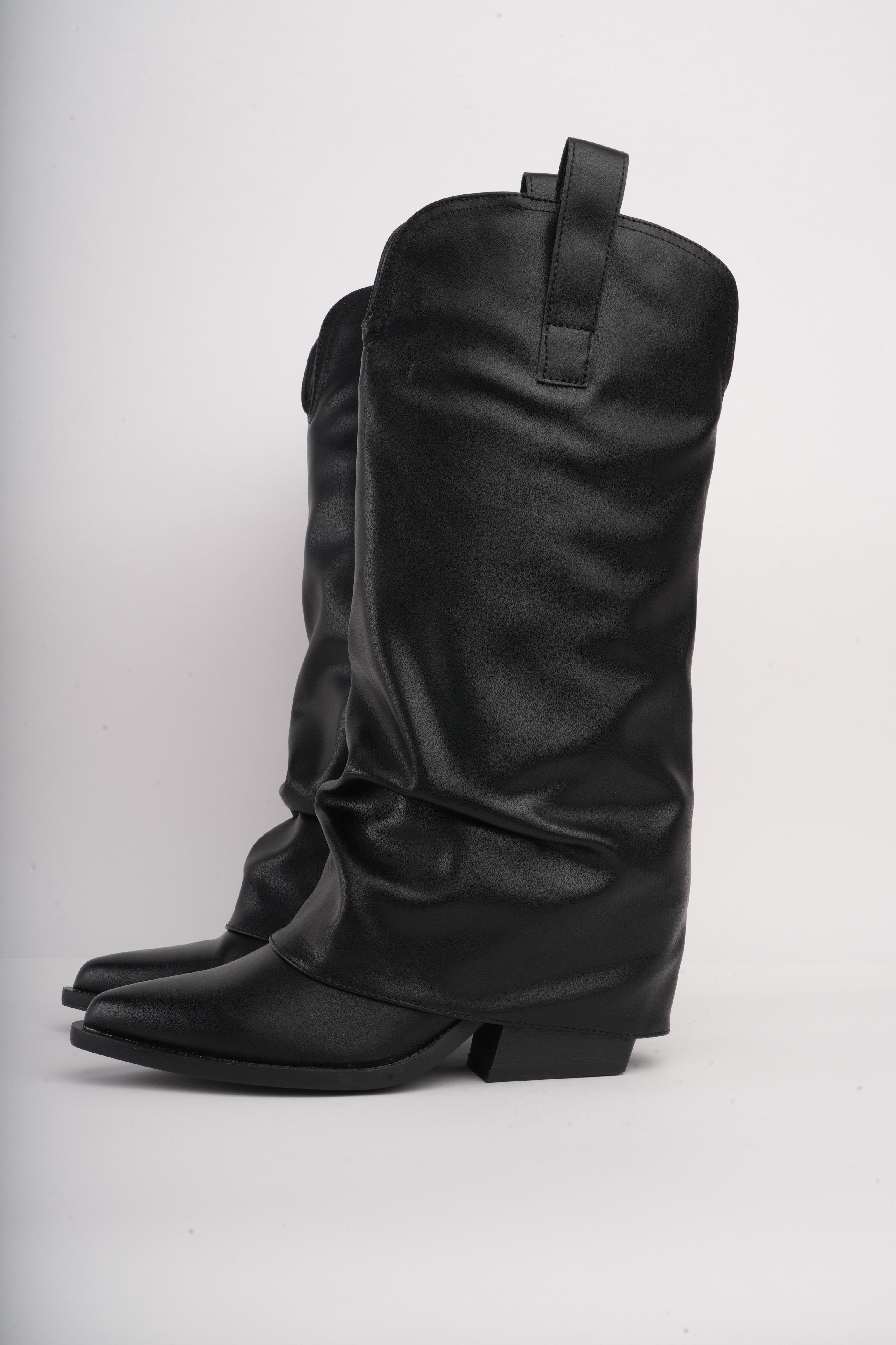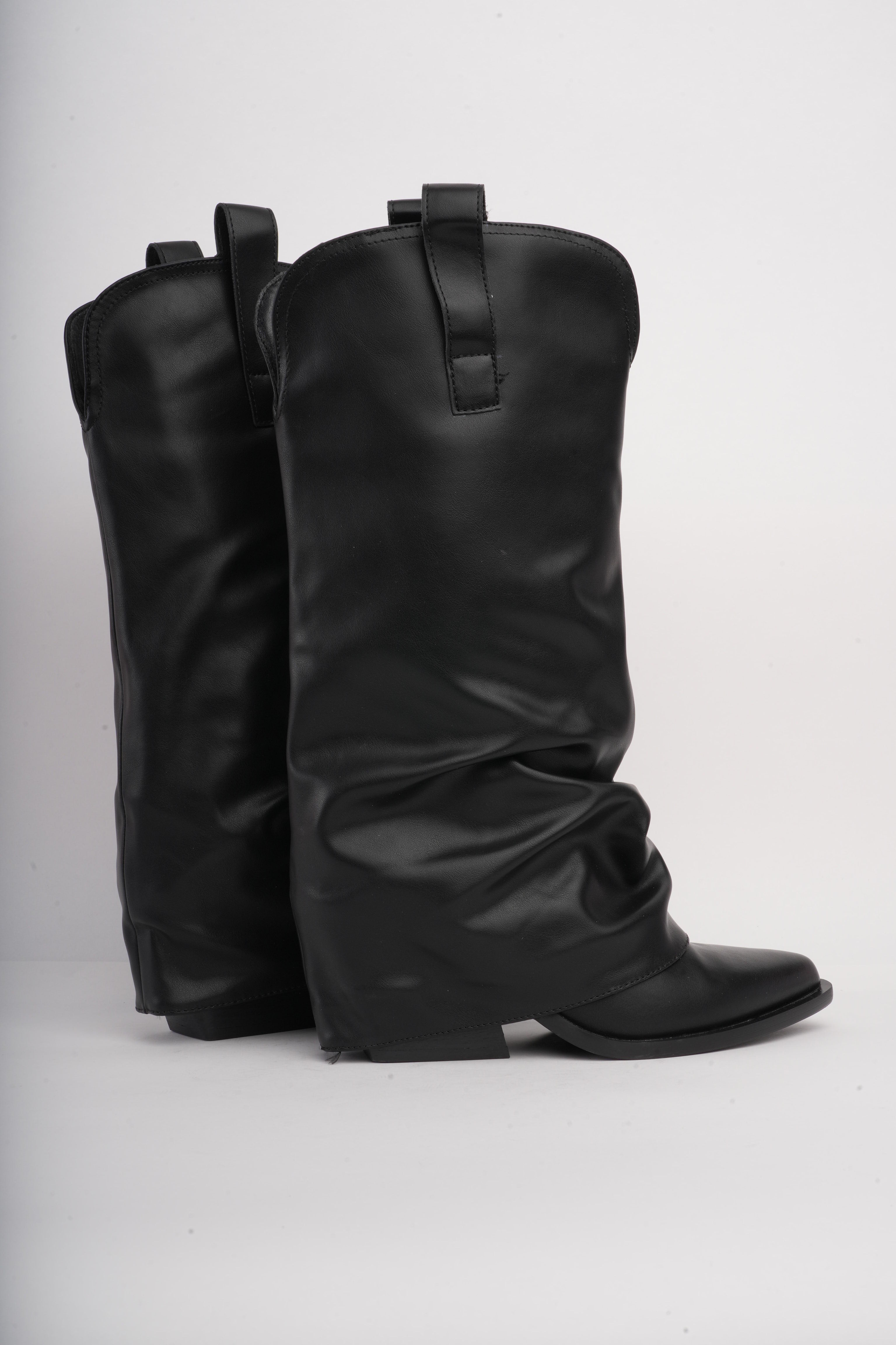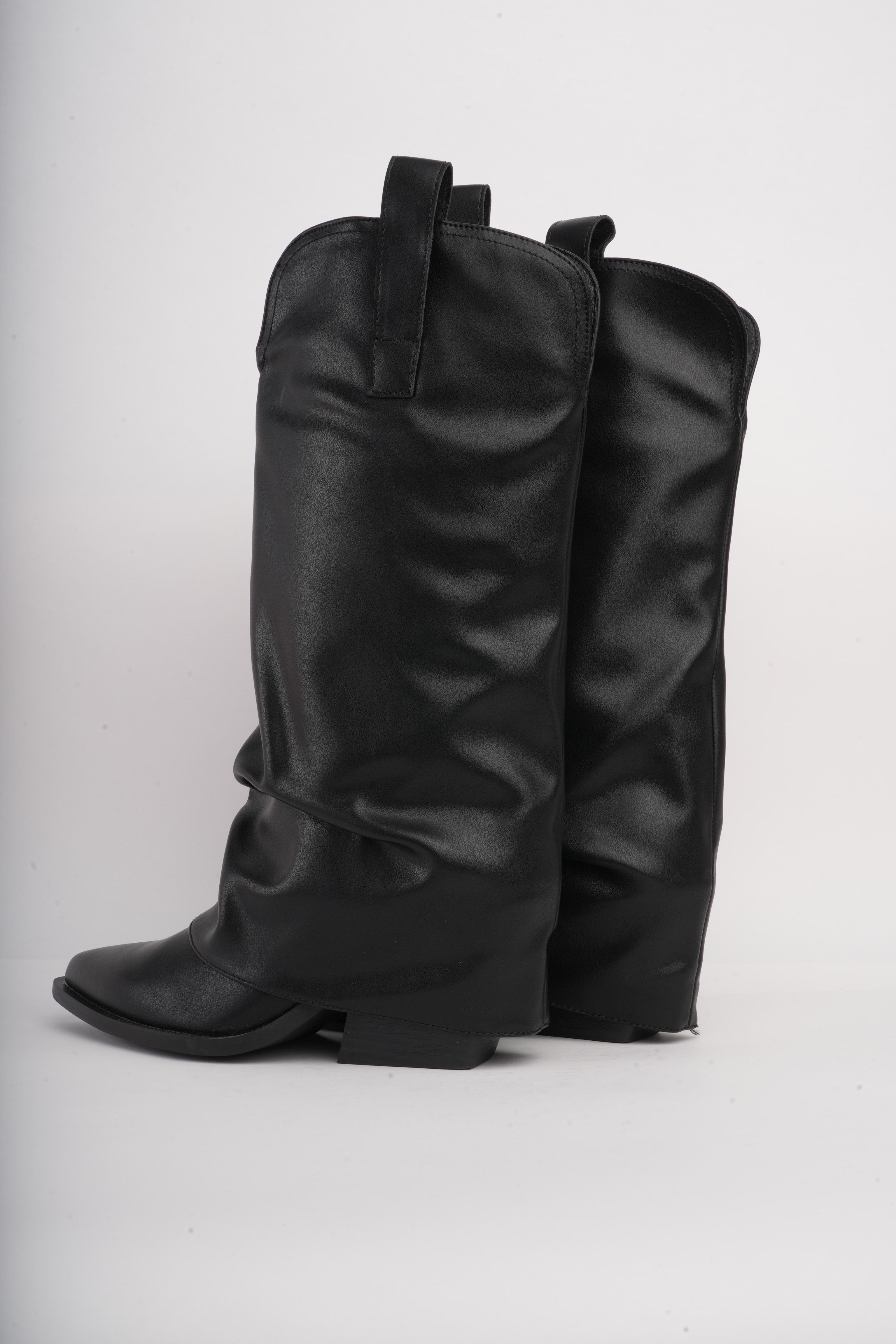 Botas largas negras corrugadas