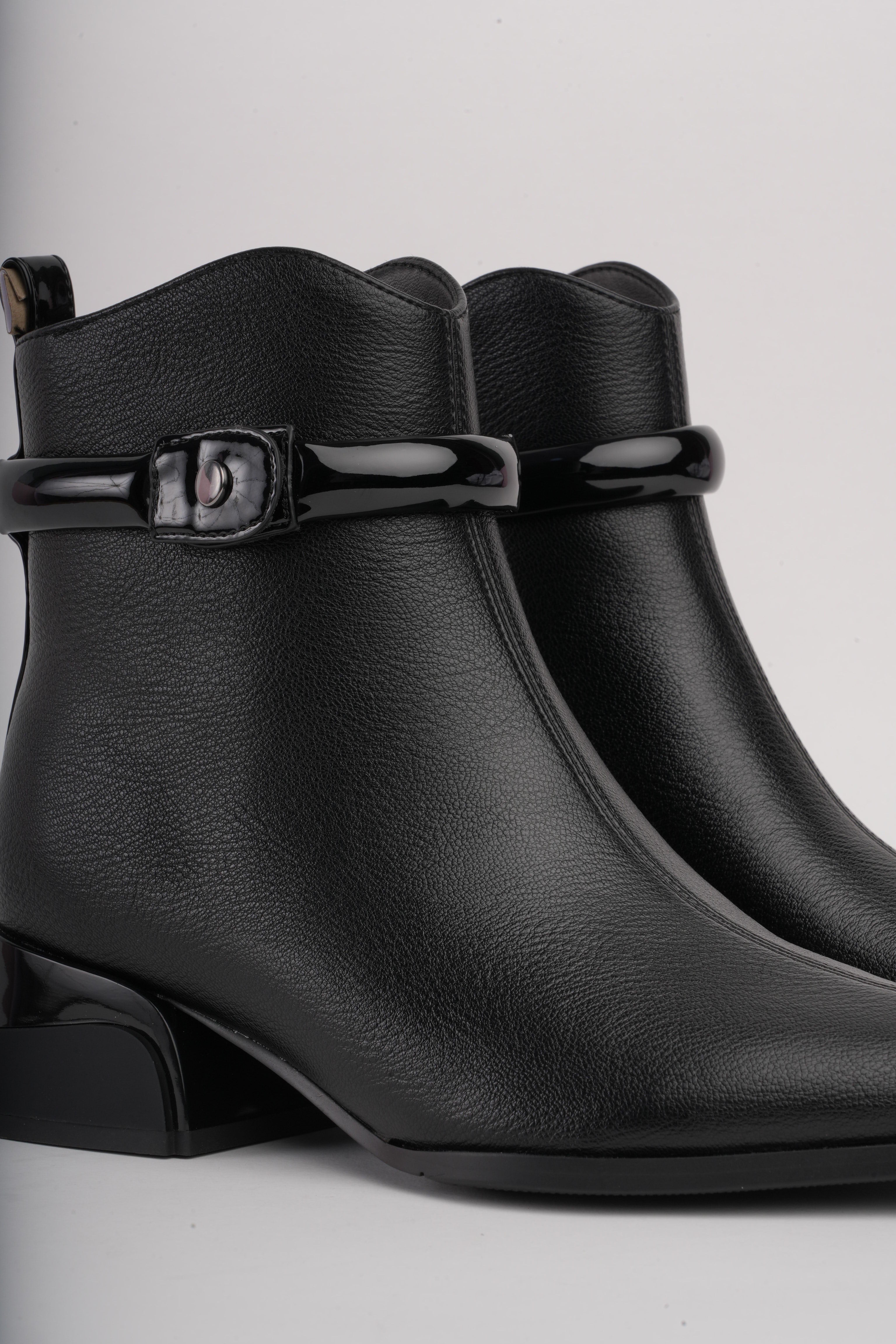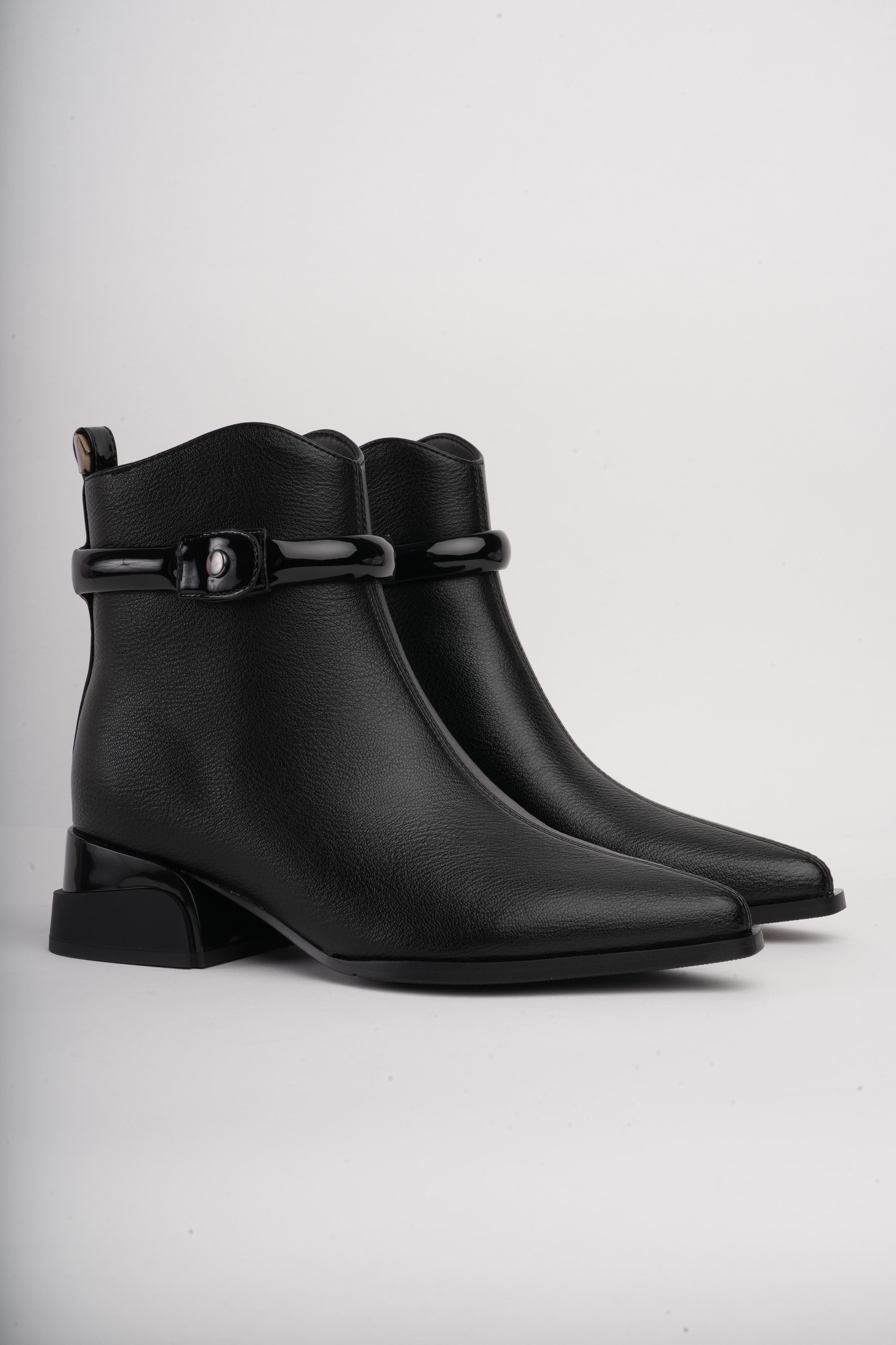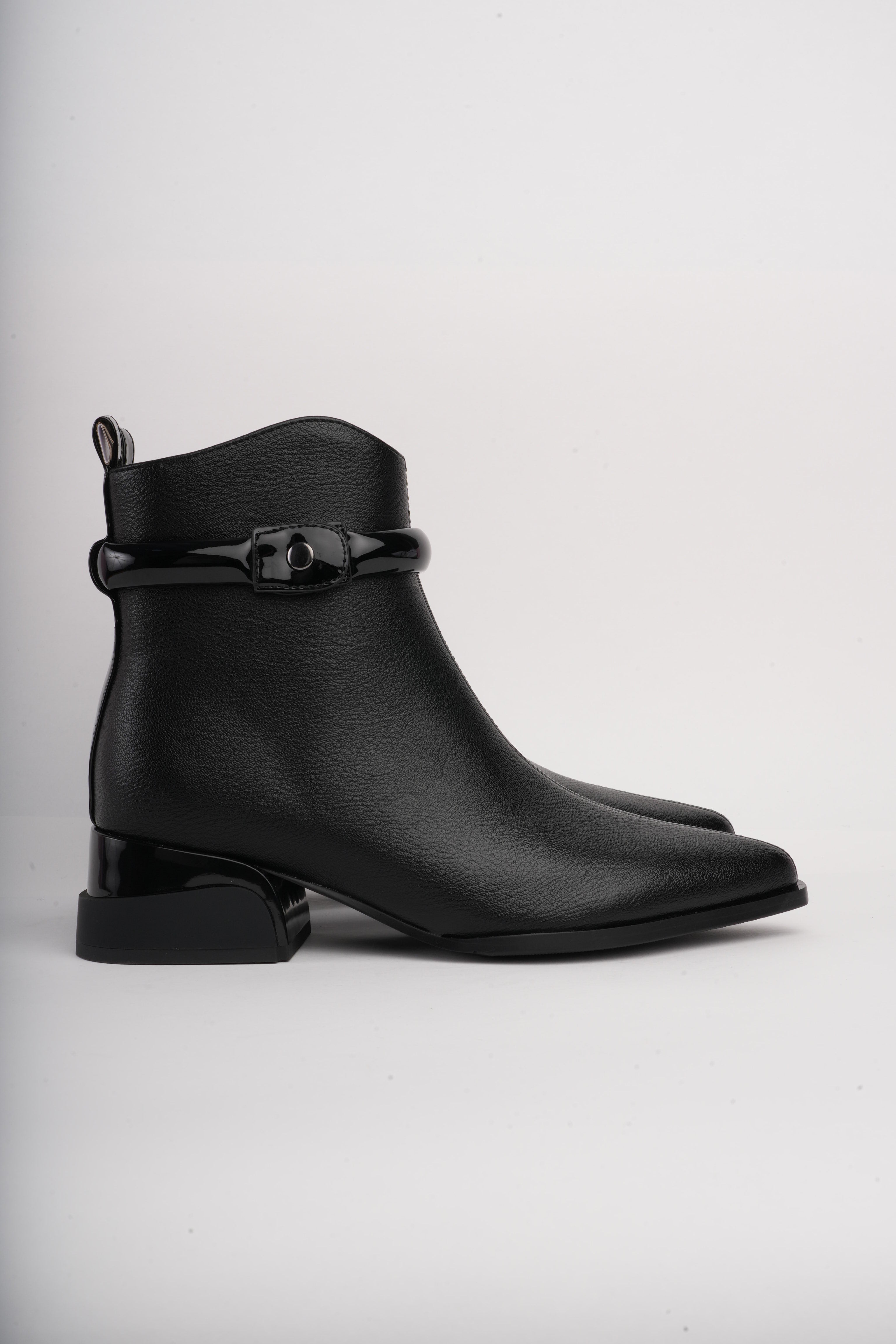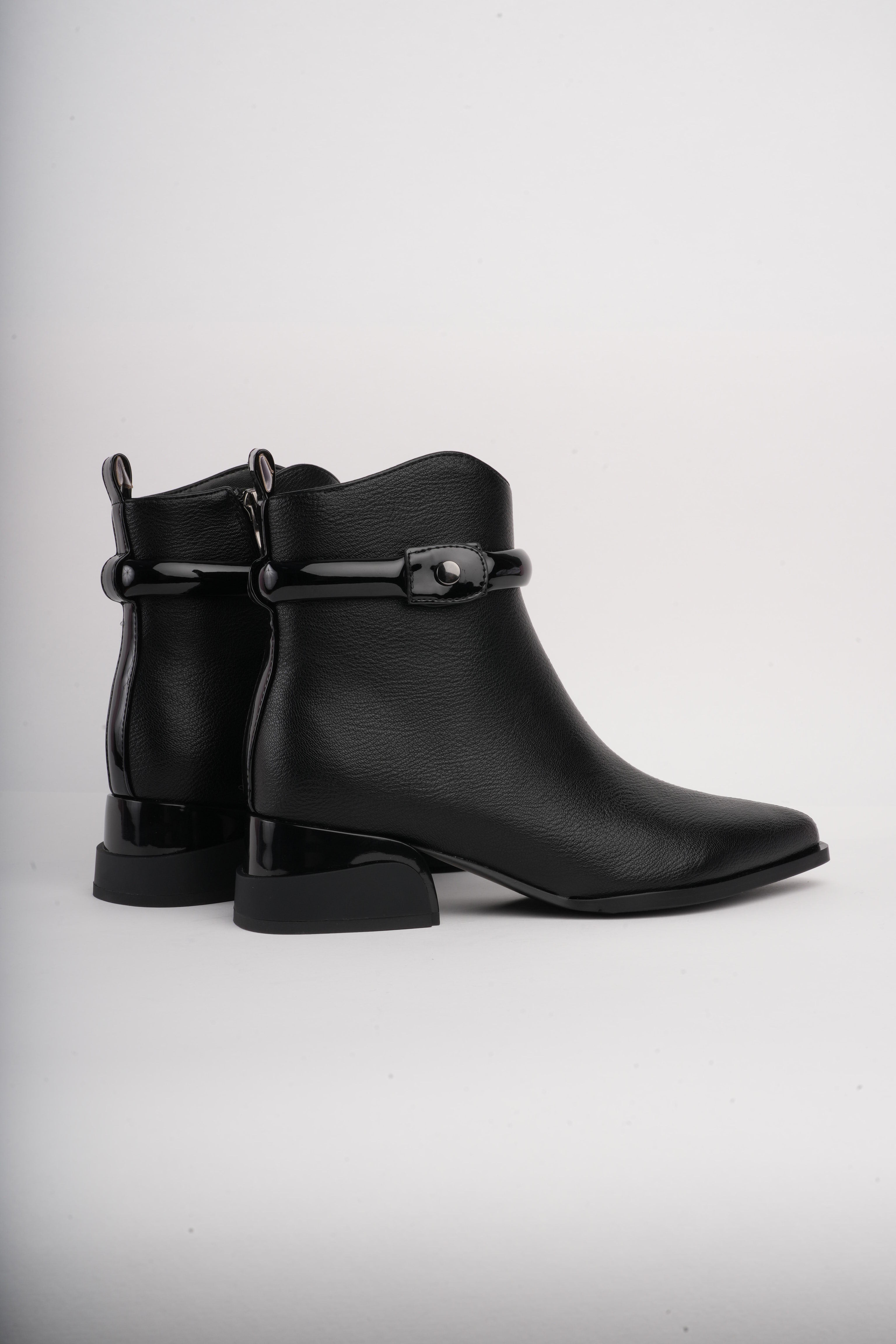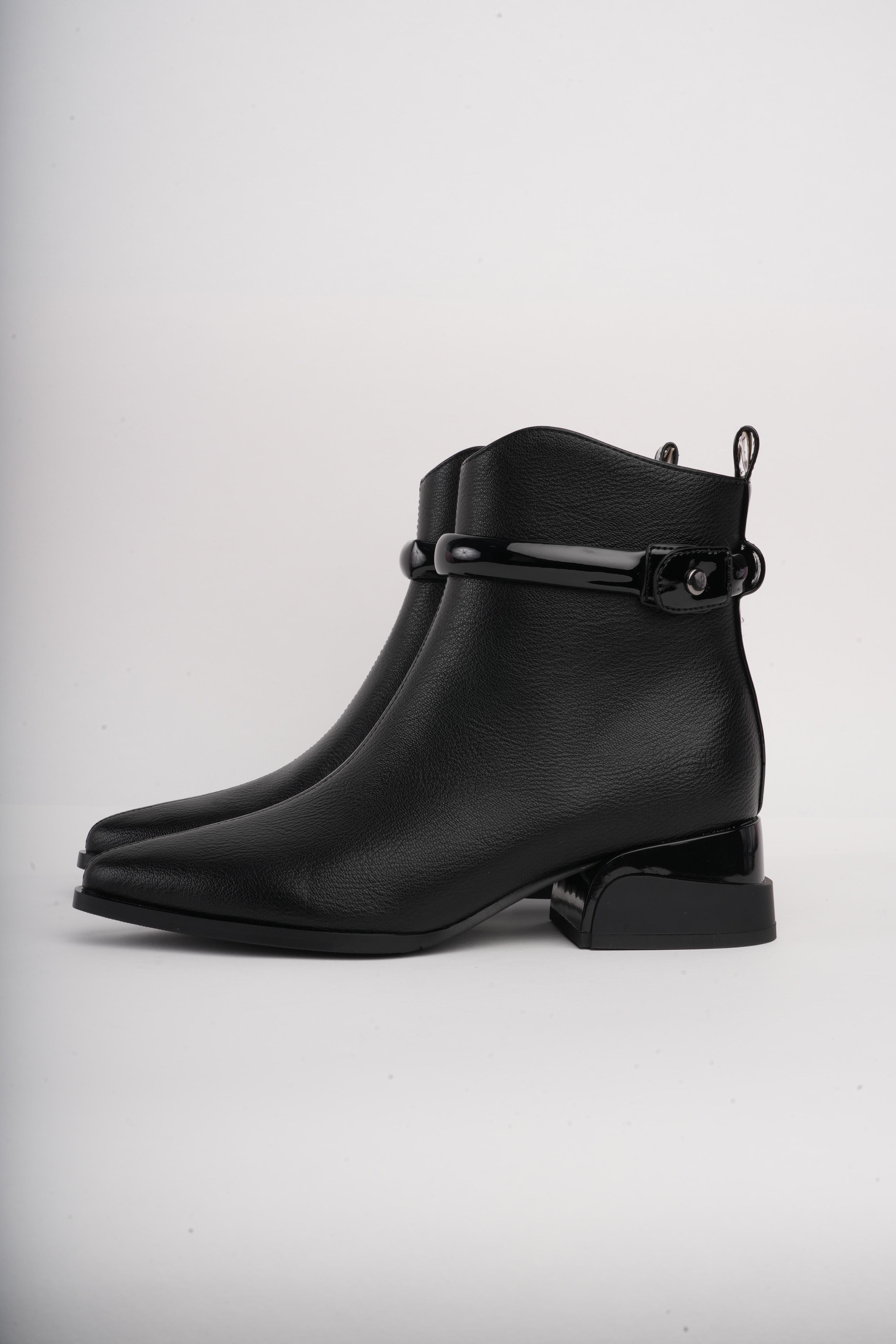 Botín negro bajo correa superior