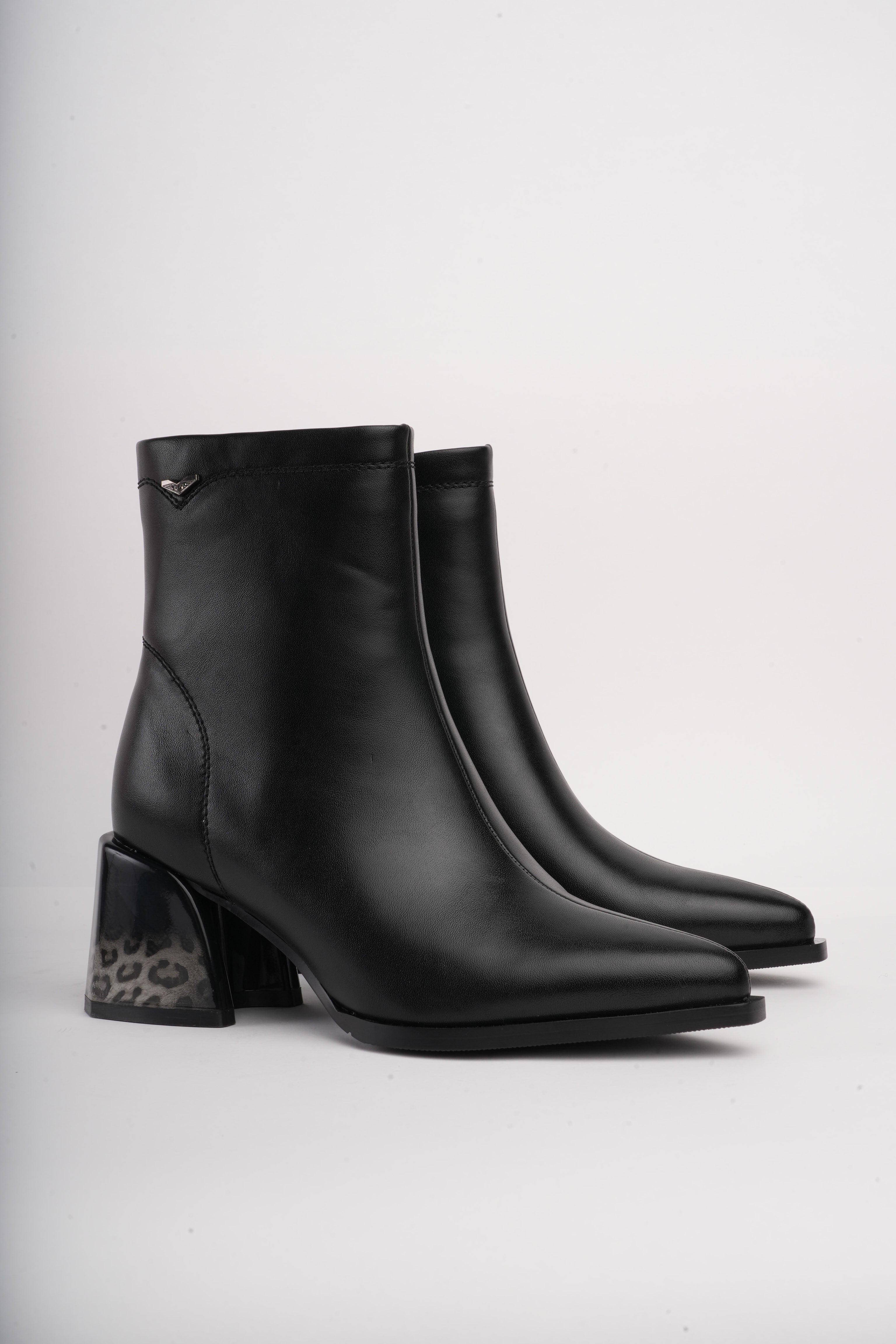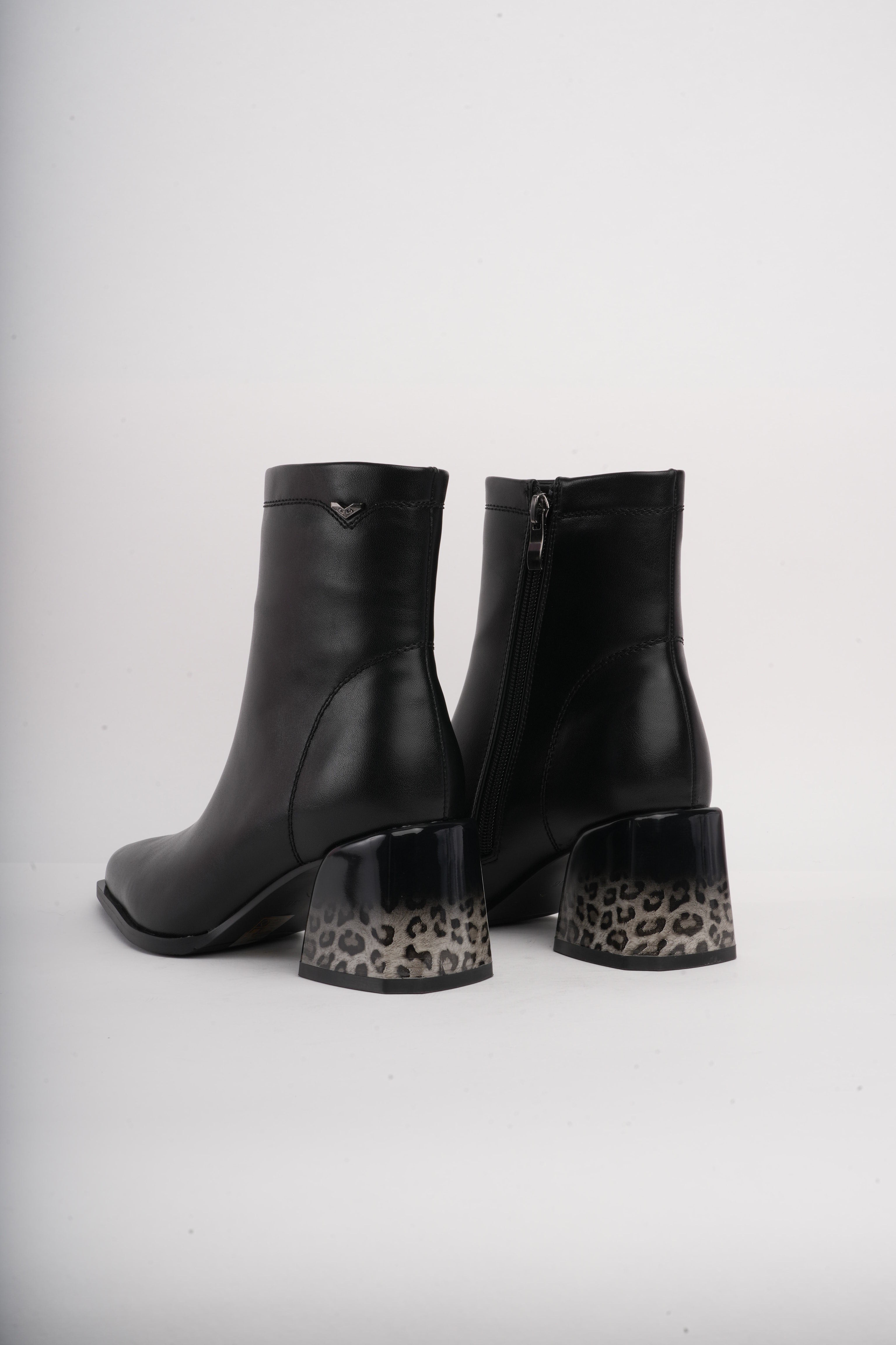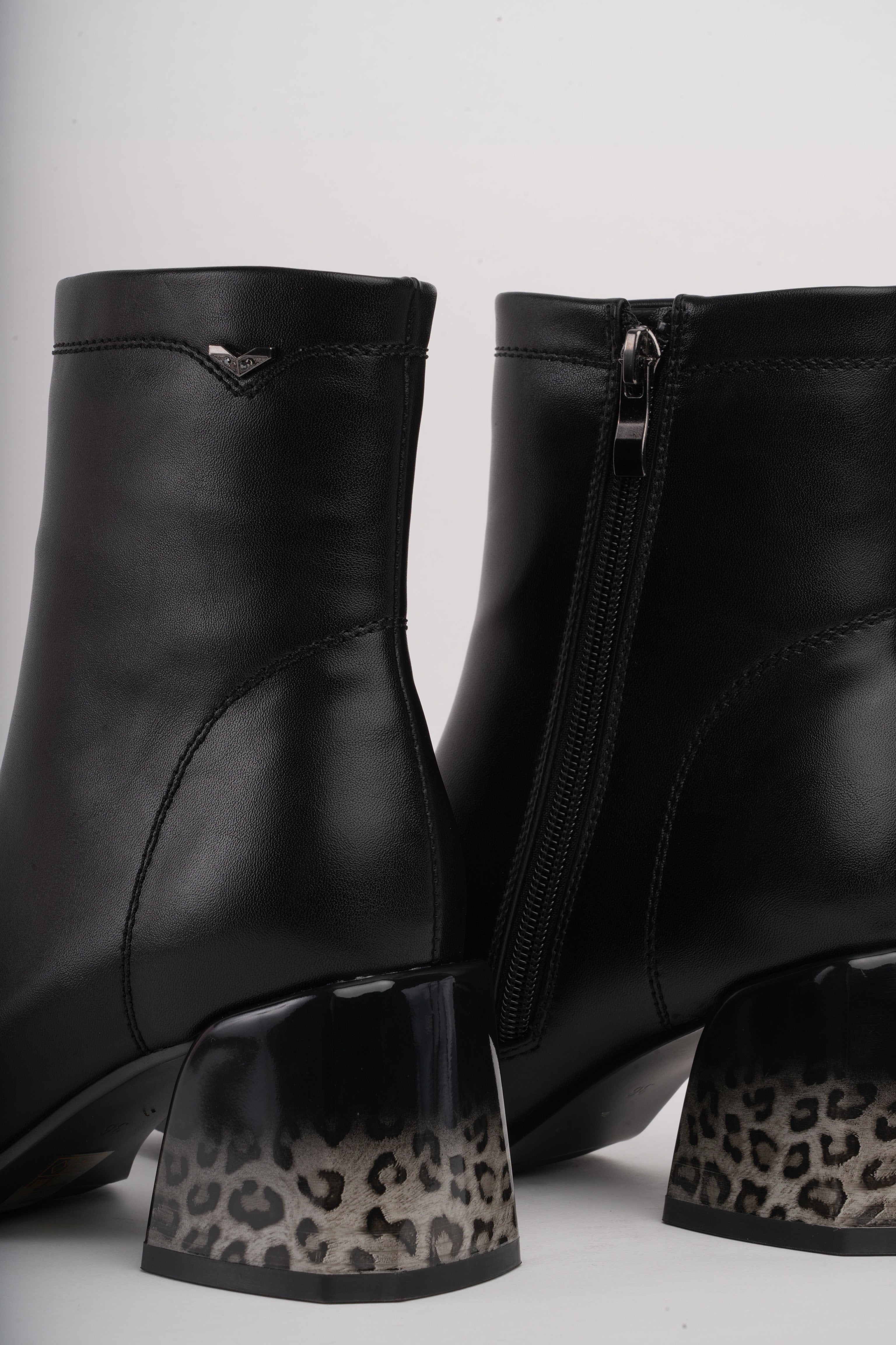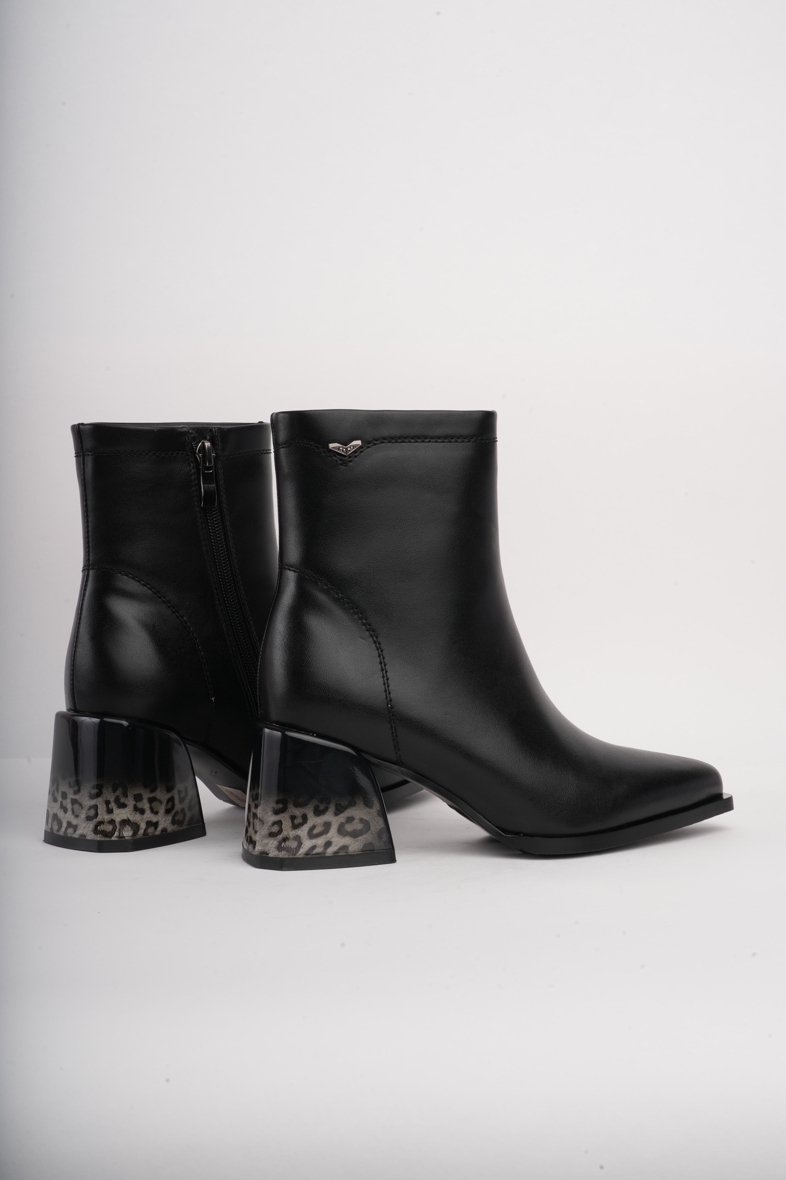 Botines negros básicos x tacón animal print