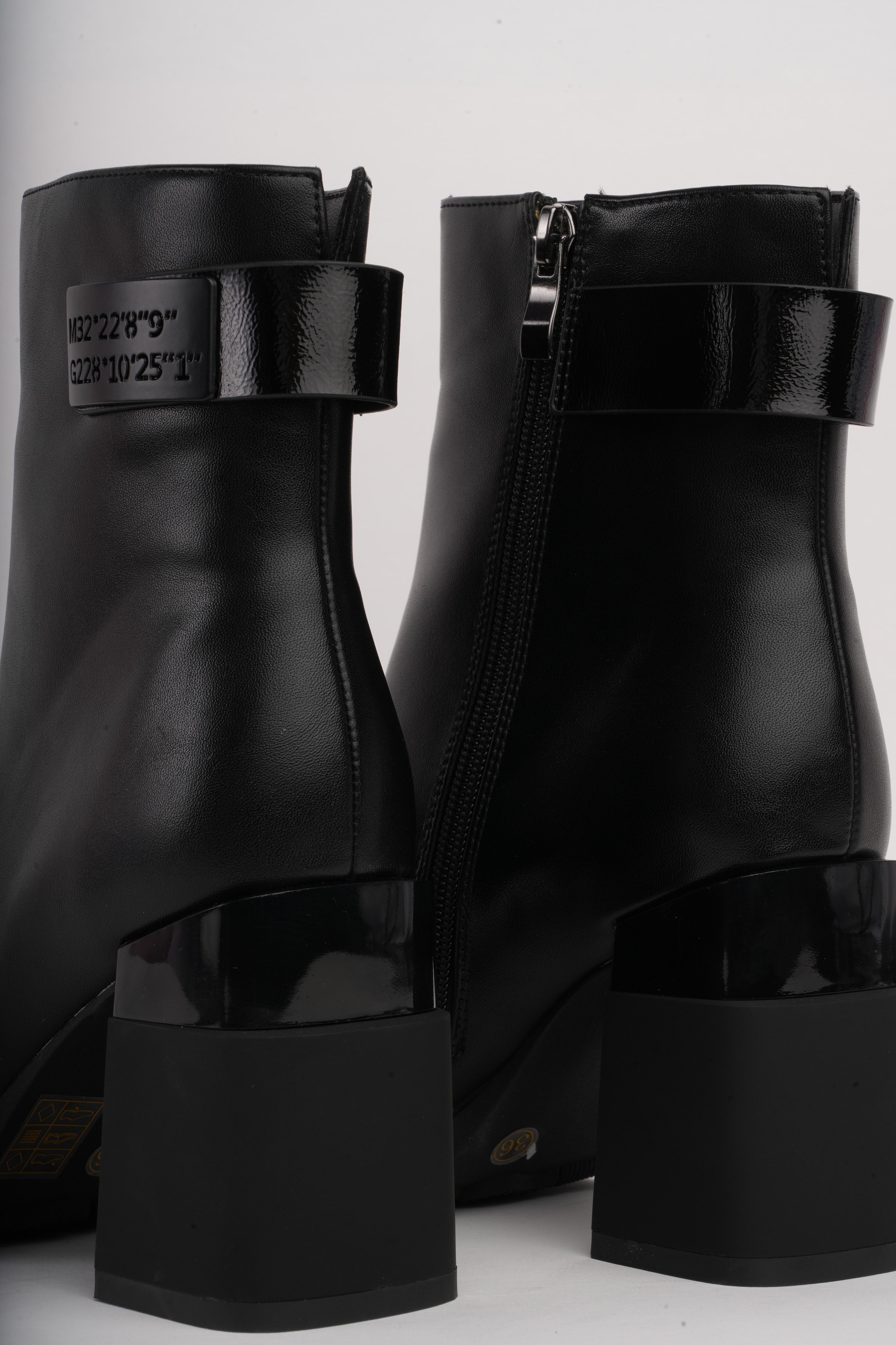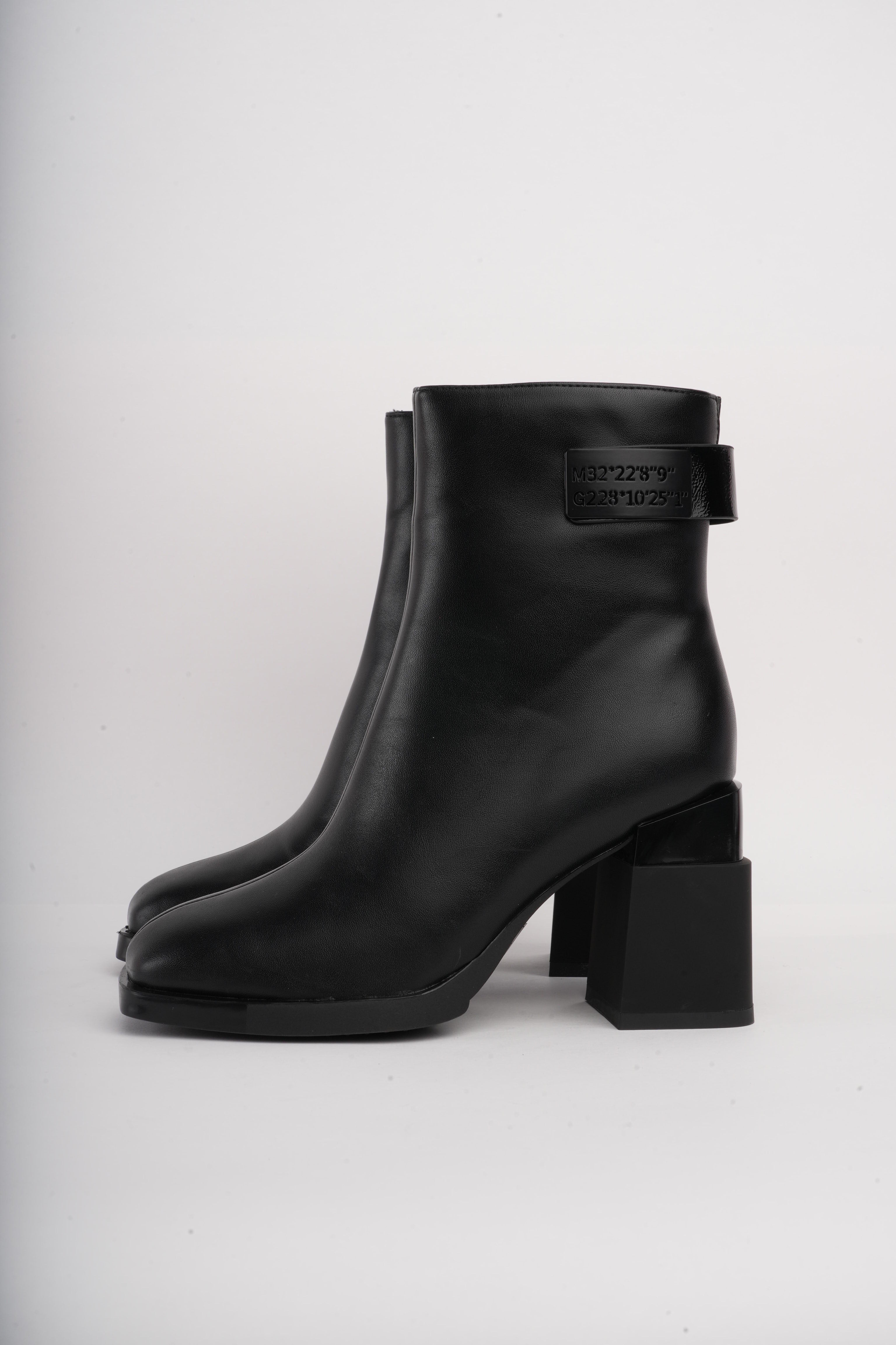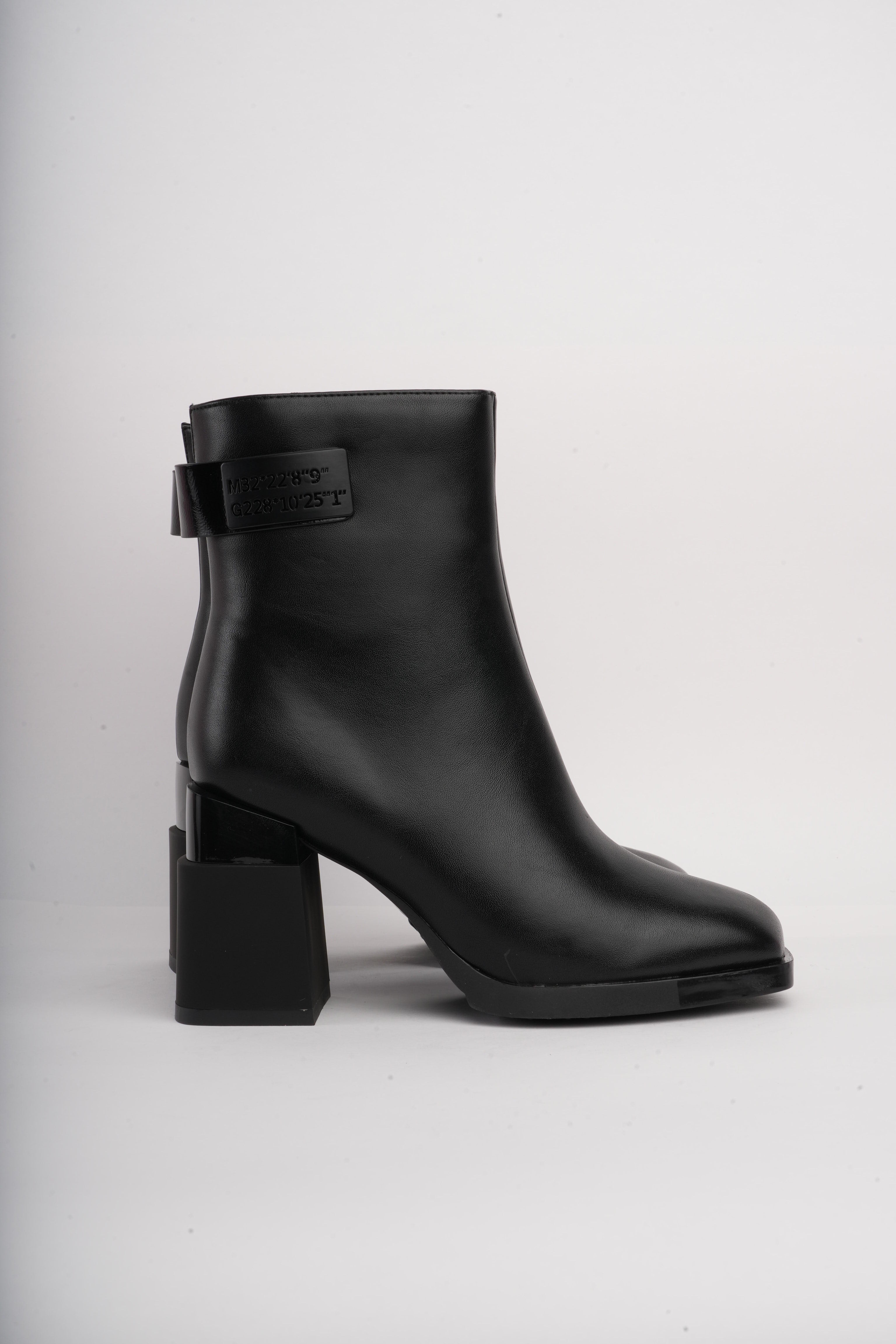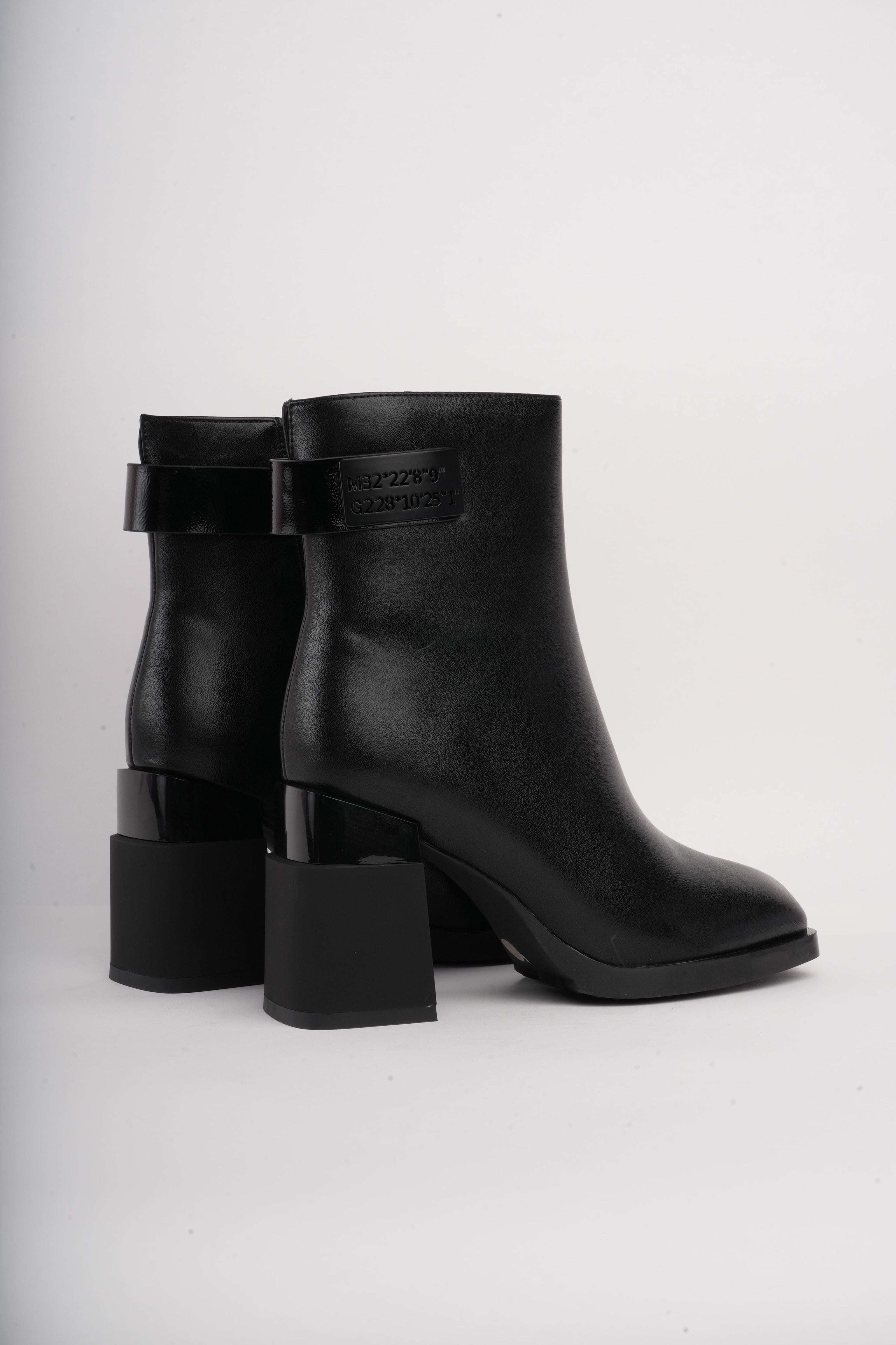Botines negros diseño en tacón y detalle trasero