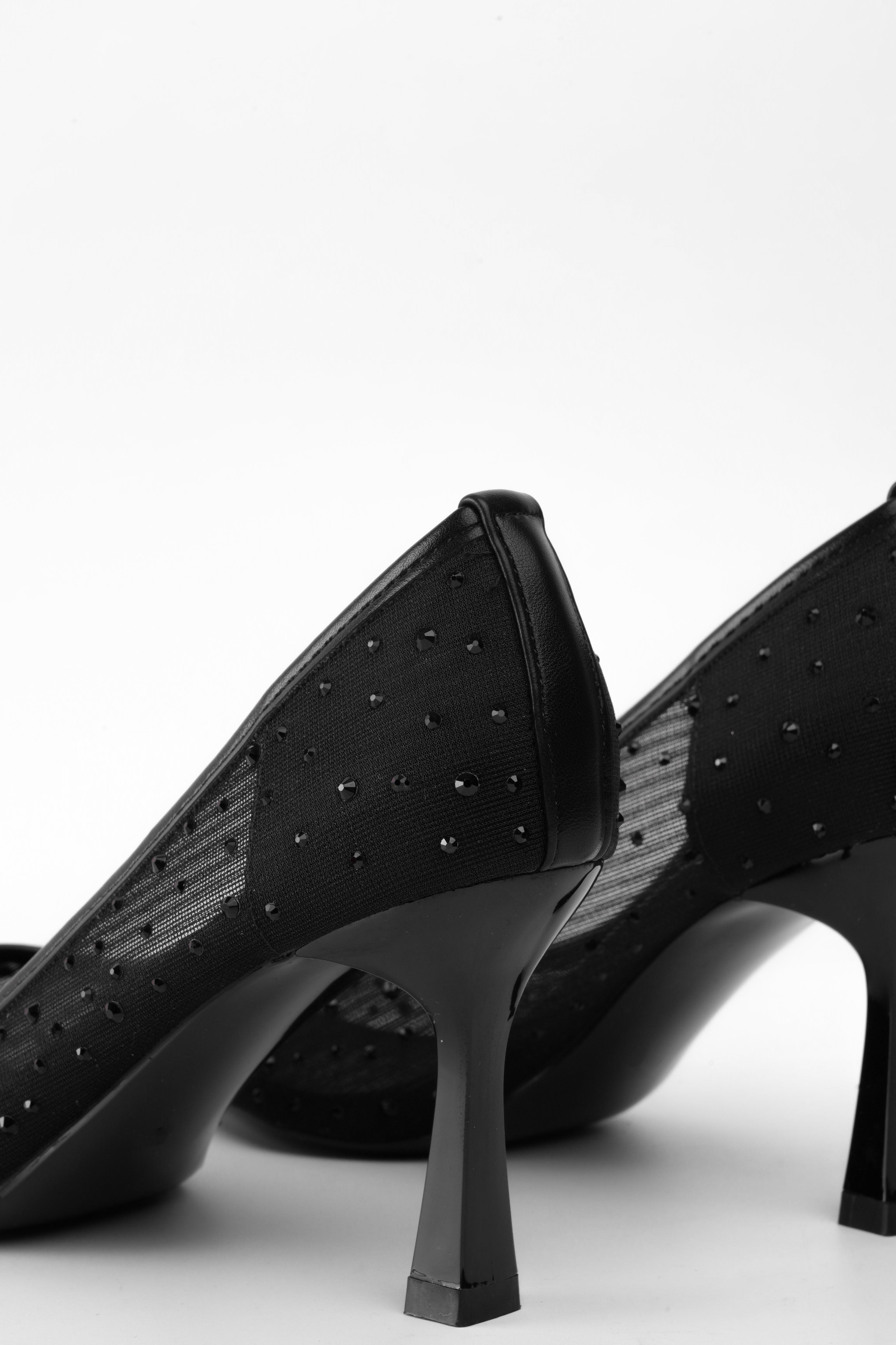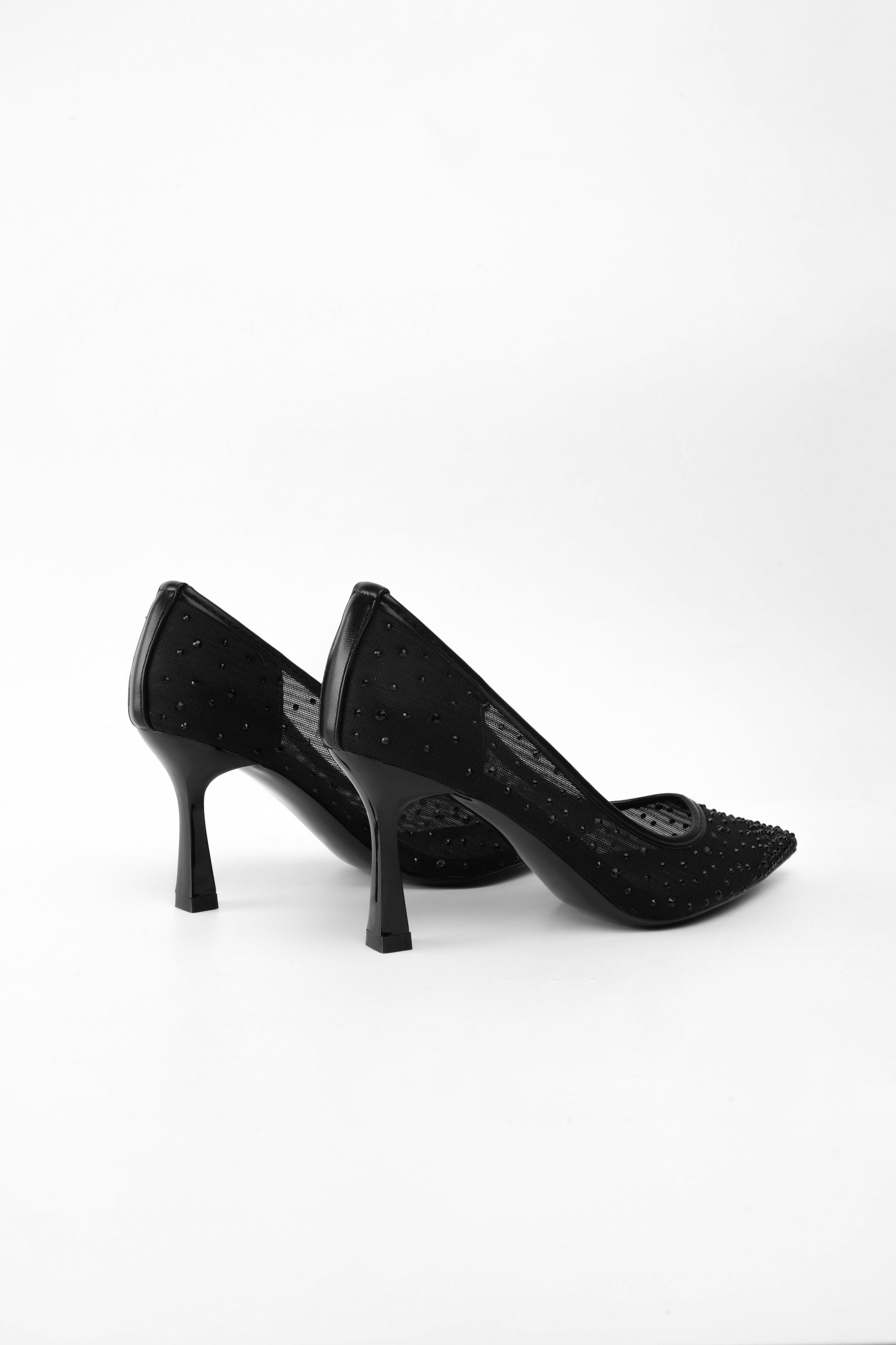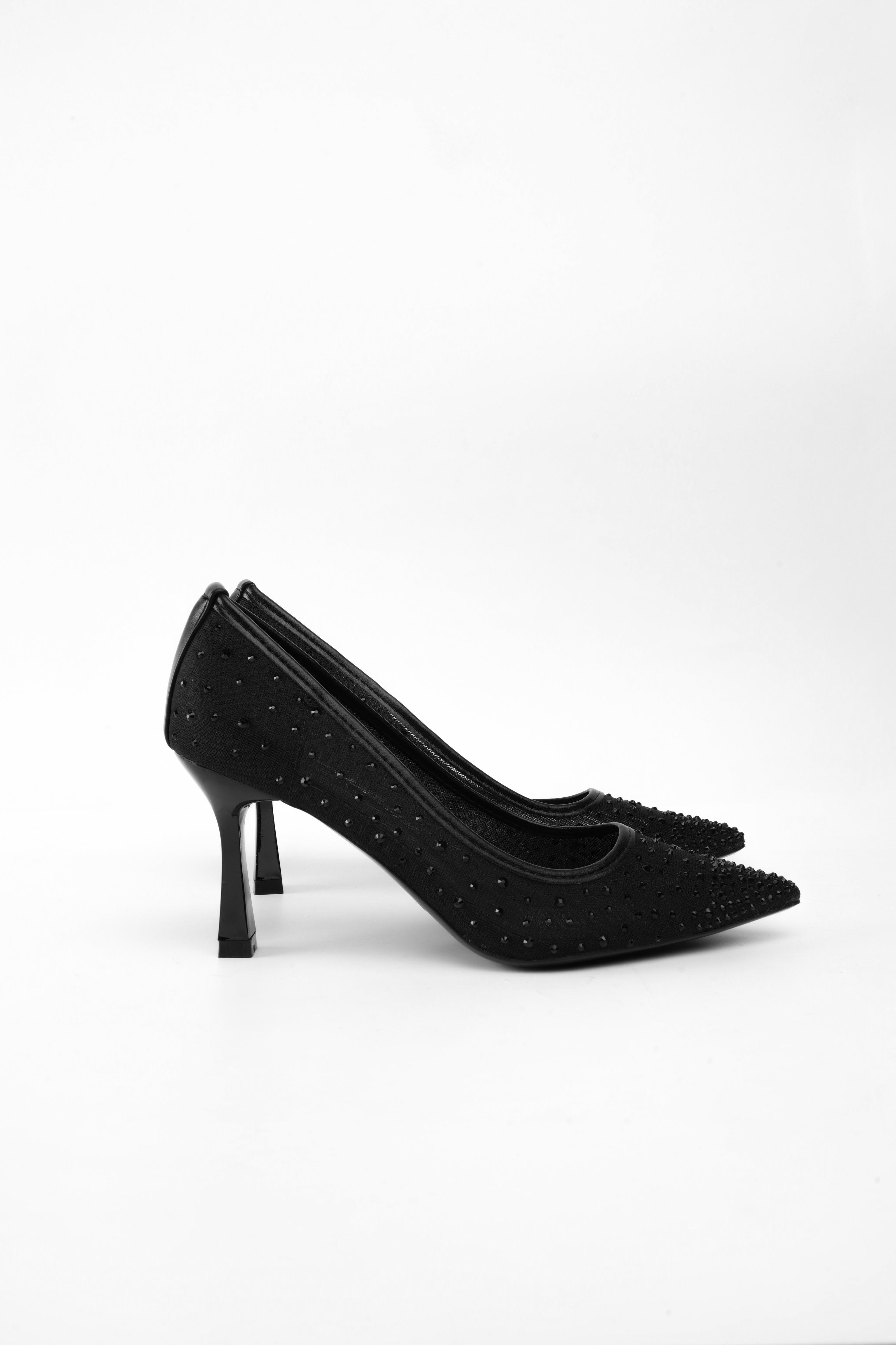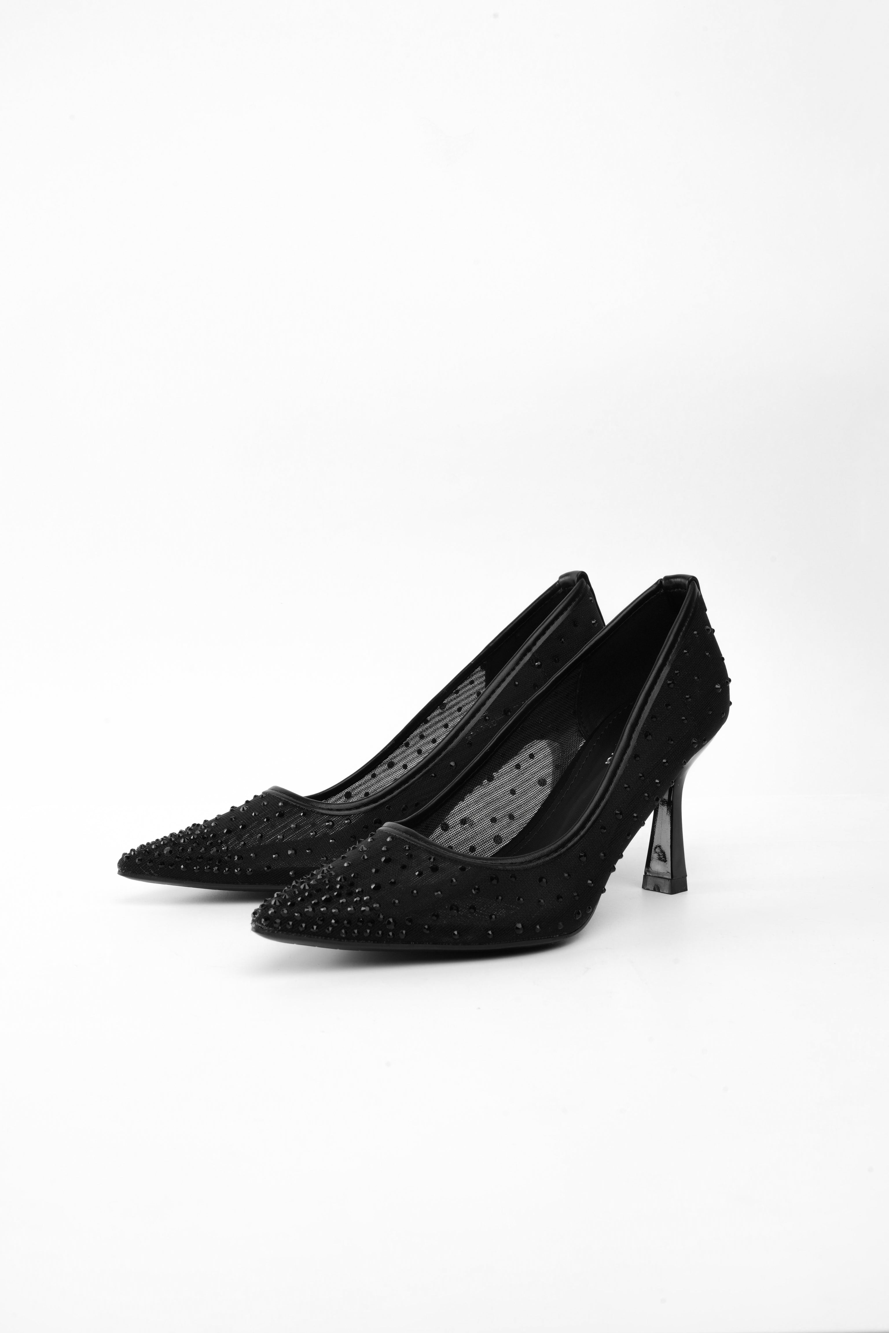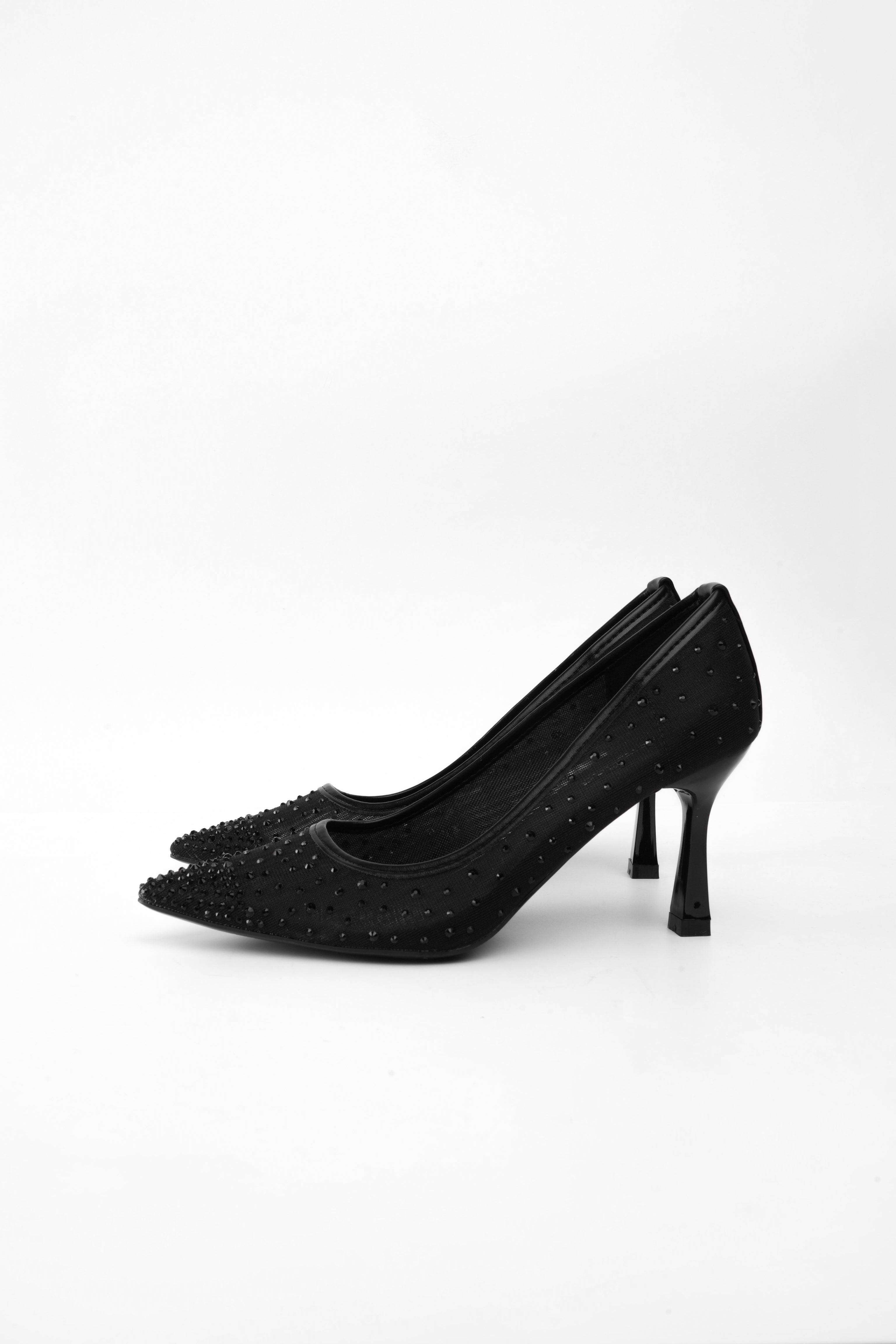 TACÓN TRANSPARENTE NEGRO APLIQUES PLATEADOS