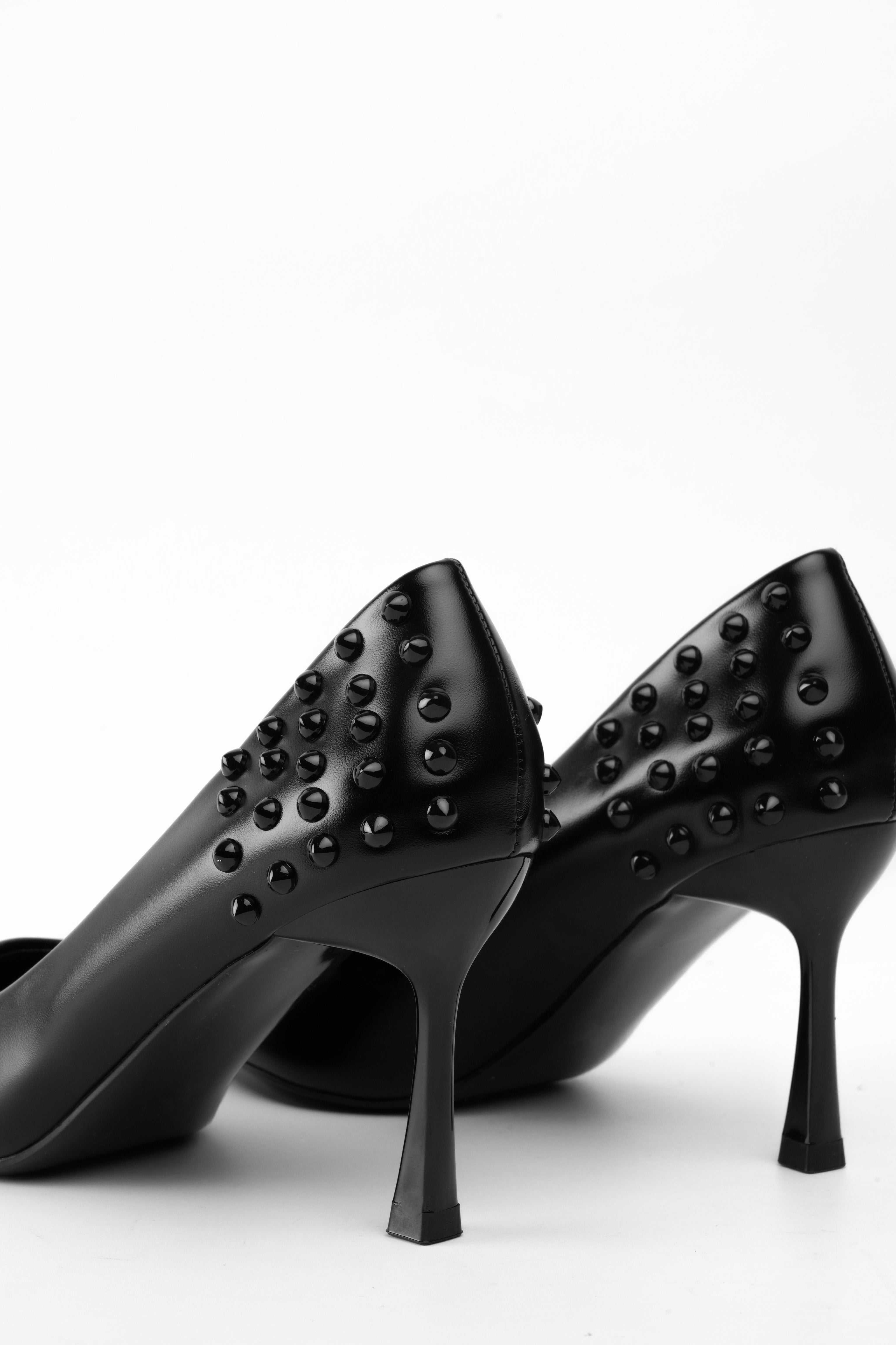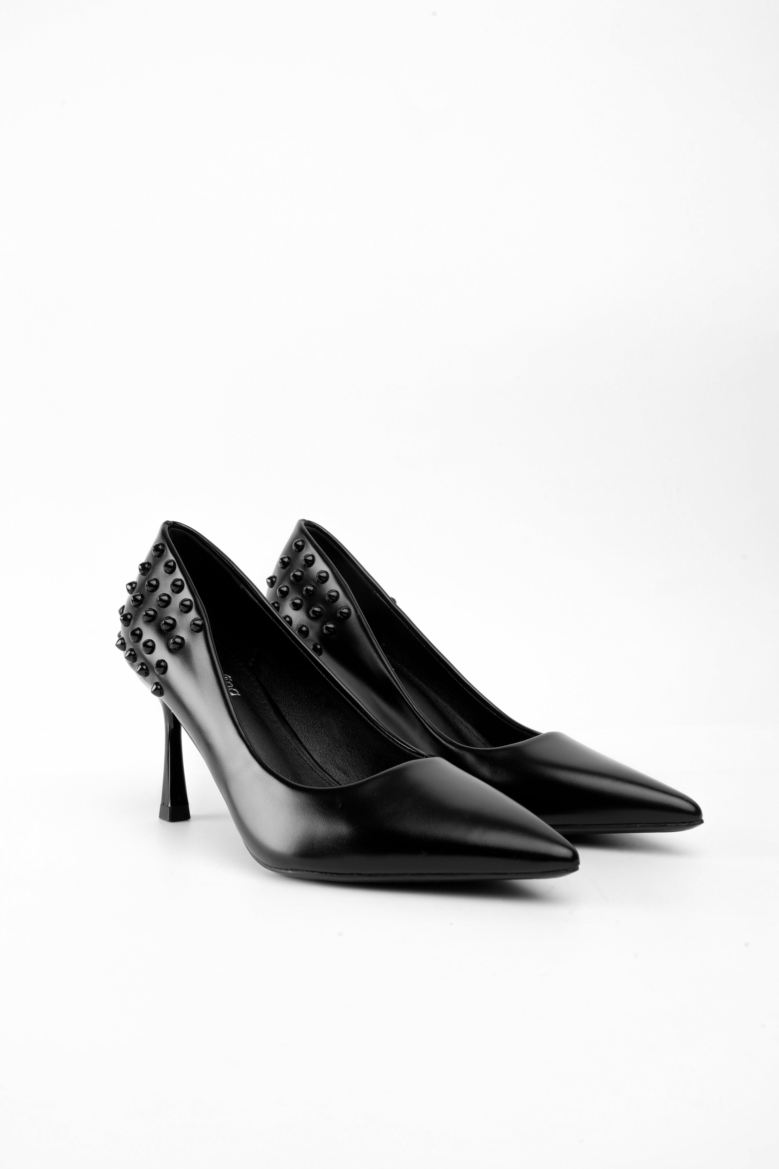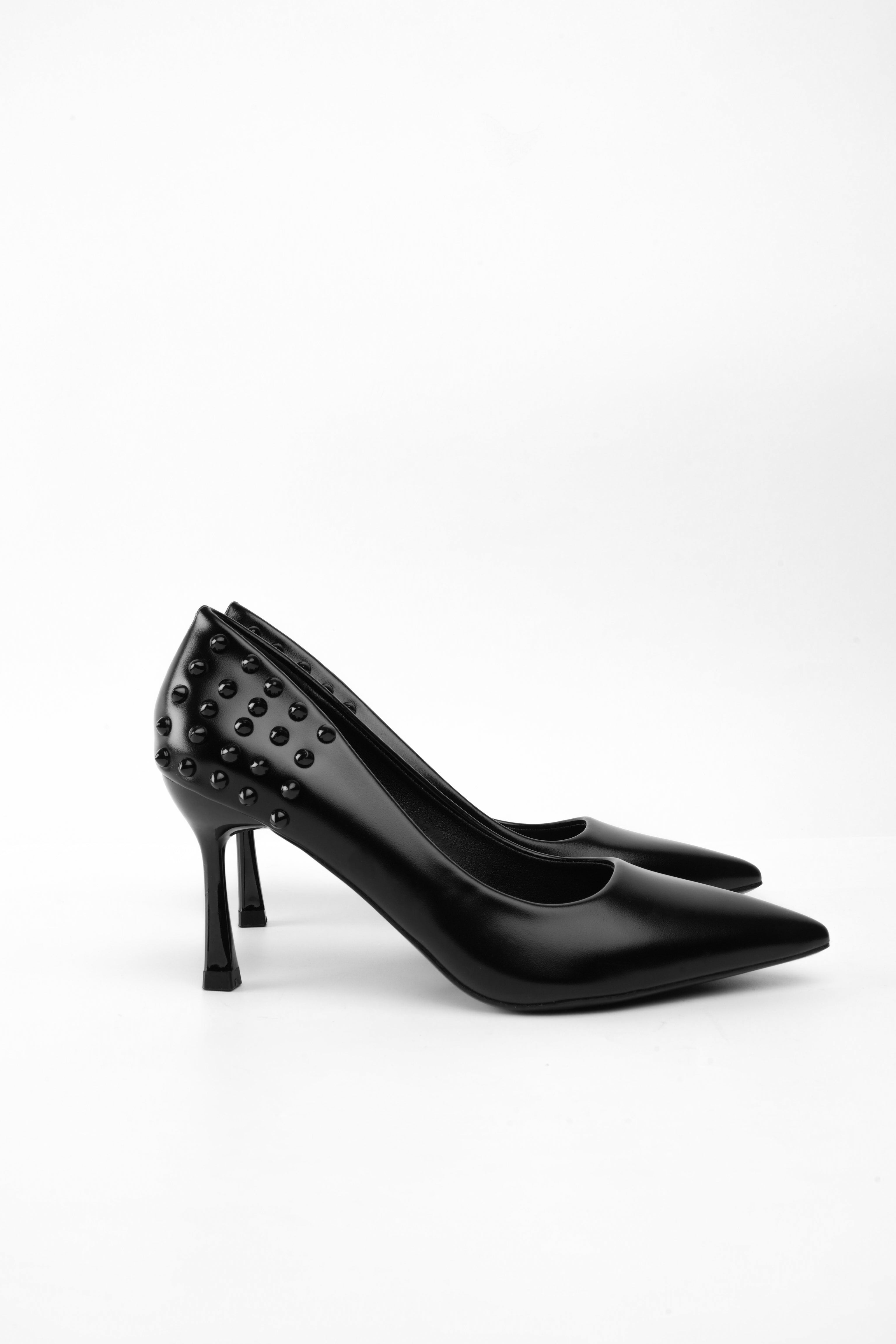 Tacón negro alto taches traseros